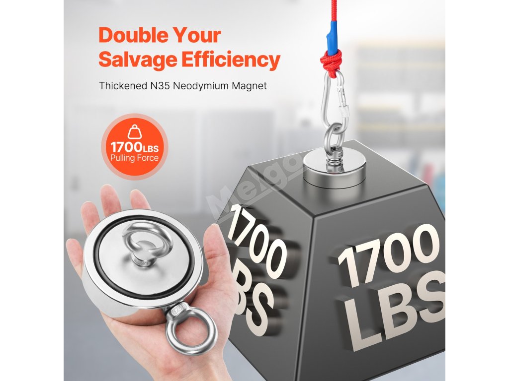 Magnet na lov kovov 1700 LBS/771 Kg obojstranný s lanom a hákom