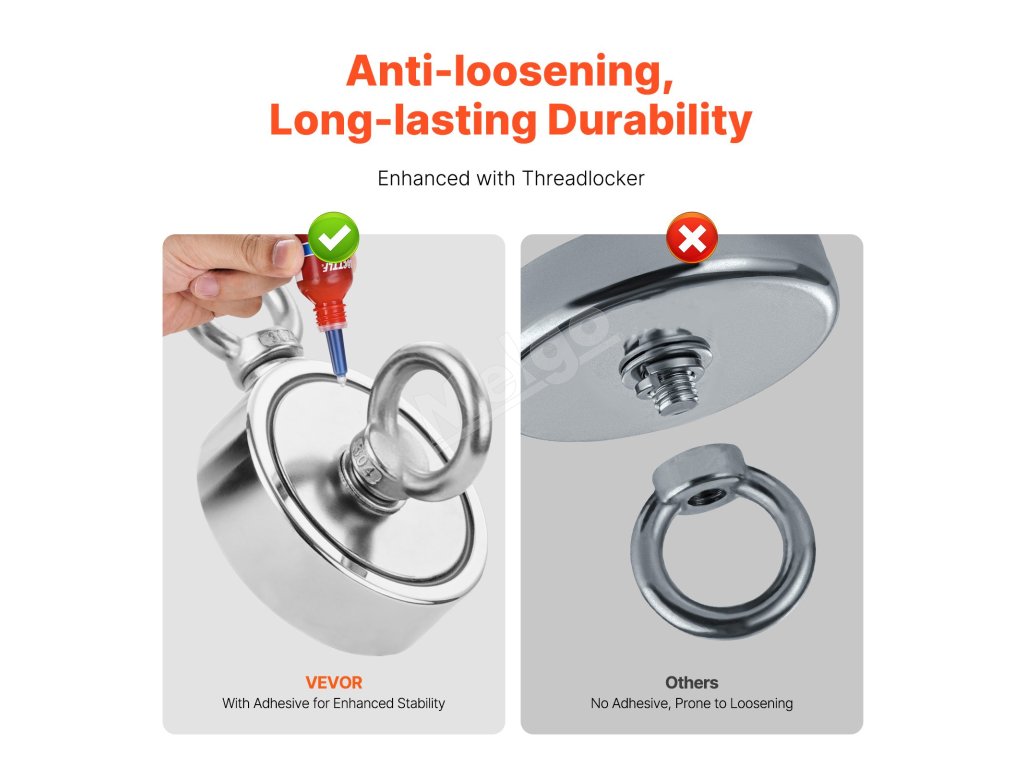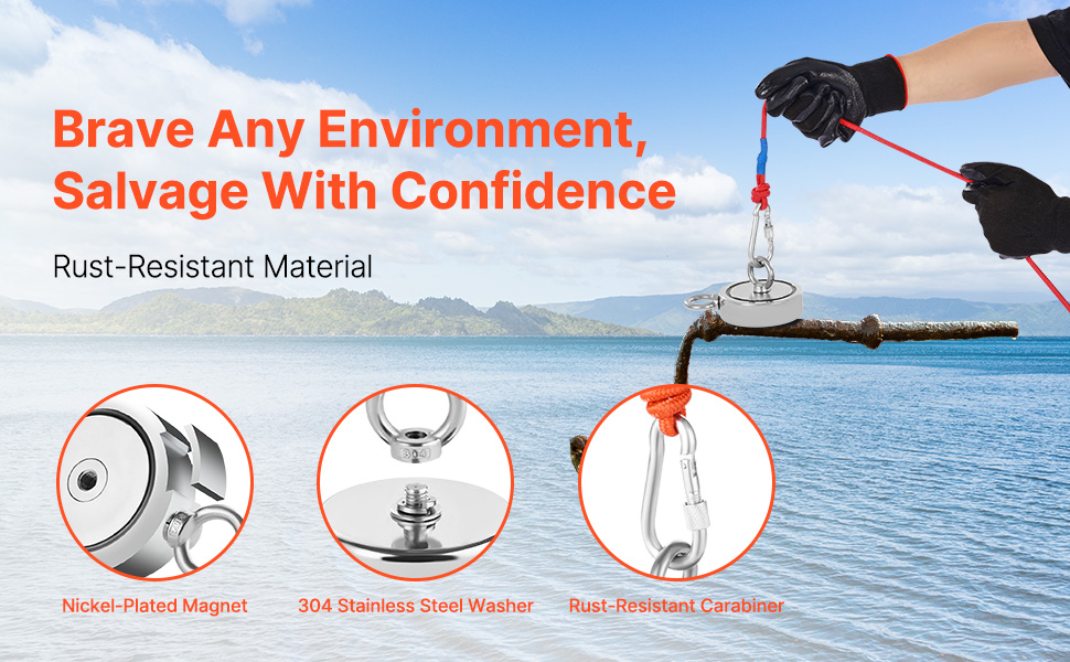 Rybársky magnet aj príslušenstvo sú vyrobené z nehrdzavejúcej ocele alebo potiahnuté vrstvami odolnými proti korózii. Sú vodotesné, odolné voči oderu a účinne zabraňujú znehodnoteniu, čím zabezpečujú väčšiu odolnosť. Nemusíte sa obávať, že by zariadenie ovplyvnila hrdza alebo degradácia.