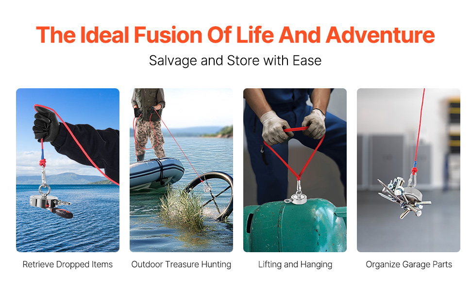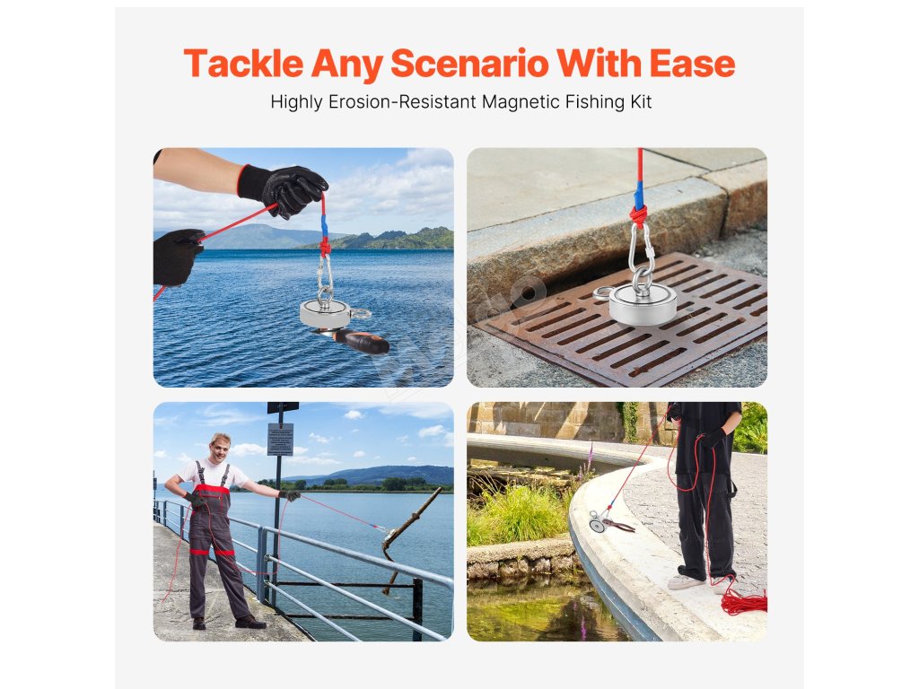 Táto magnetická rybárska súprava je ideálna nielen na vyhľadávanie pod vodou a hľadanie pokladov v prírode, ale aj na zavesenie predmetov, uskladnenie dielov v garáži a podobne. Vďaka svojim rozmanitým funkciám prináša väčšie pohodlie a radosť z vašich outdoorových dobrodružstiev aj z domáceho používania.
