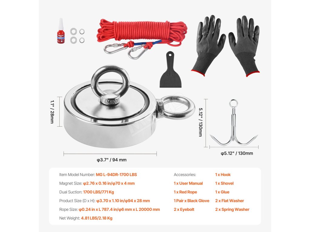 Táto magnetická rybárska súprava obsahuje starostlivo vybrané príslušenstvo, ktoré je nielen výkonné, ale aj odolné, a poskytuje vám kompletnú sadu nástrojov pre všetky vaše potreby pri hľadaní pokladov.