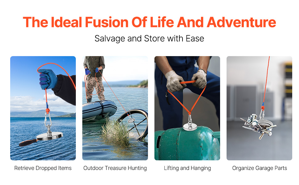Táto magnetická rybárska súprava je ideálna nielen na vyhľadávanie pod vodou a hľadanie pokladov v prírode, ale aj na zavesenie predmetov, uskladnenie dielov v garáži a podobne. Vďaka svojim rozmanitým funkciám prináša väčšie pohodlie a radosť z vašich outdoorových dobrodružstiev aj z domáceho používania.