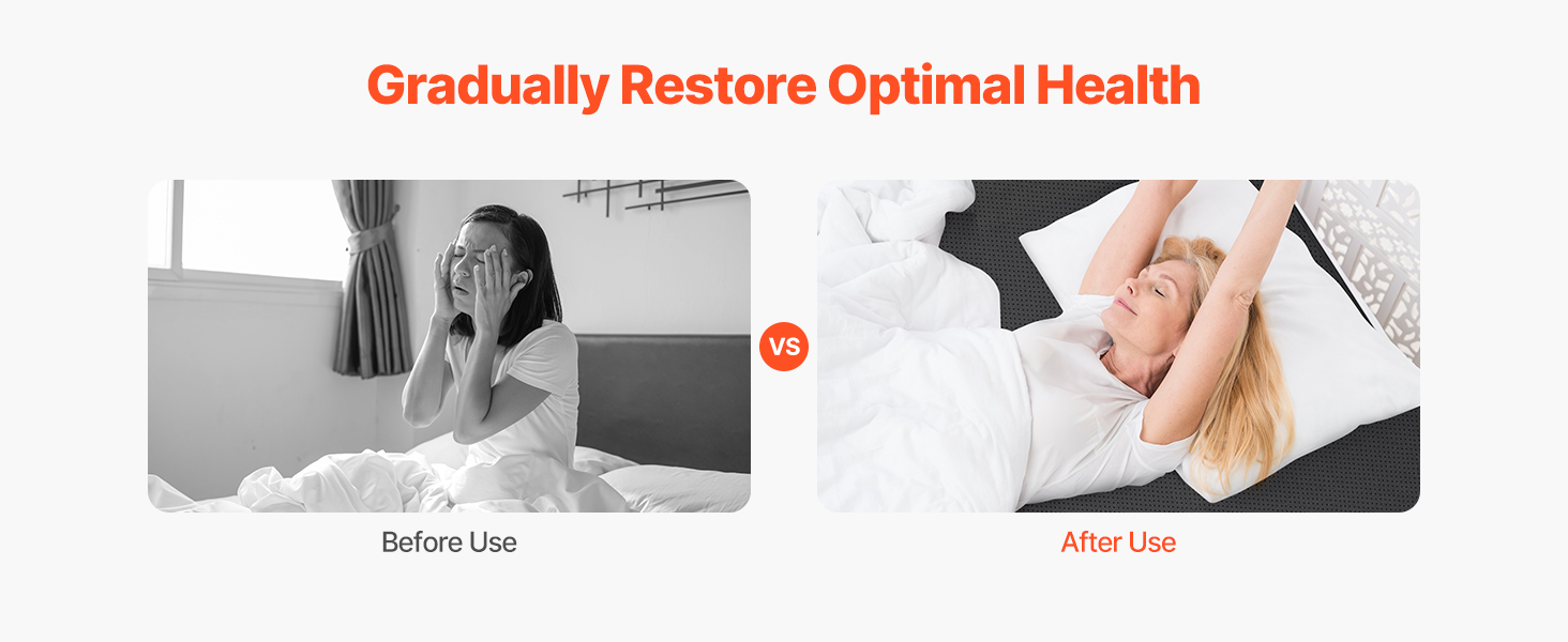 Vďaka uzemňovacej podložke pocítite zníženie bolesti, zlepšenie kvality spánku a zníženie stresu. Pomáha obnoviť energiu a zmierniť svalové napätie a bolesti hlavy, pričom podporuje vnútorný pokoj a celkovú relaxáciu.