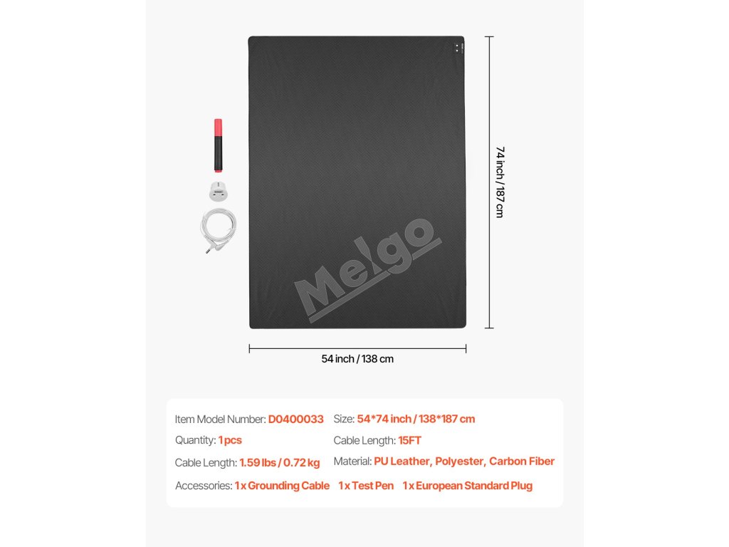 Uzemňovacia podložka 73×54 in, pu koža, protišmyková, s 15 feet káblom