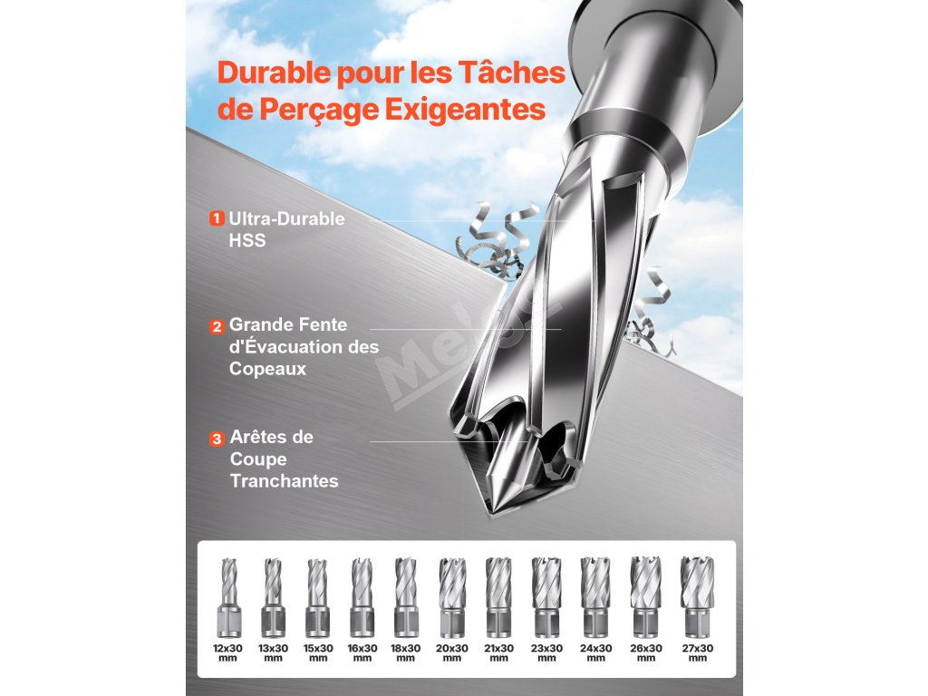 Vďaka kompletnej súprave 11 vrtákov môžu používatelia ľahko prepínať medzi veľkosťami otvorov podľa jednotlivých úloh. Bity sa dokonale hodia k vŕtačke, čím jej pomáhajú udržať stabilný výkon na akomkoľvek kovovom povrchu.