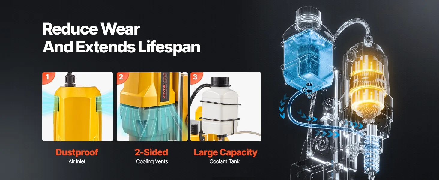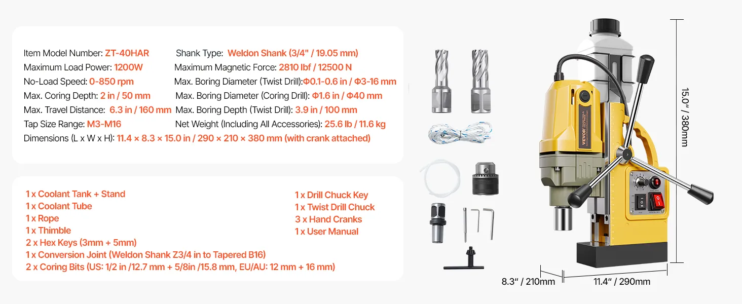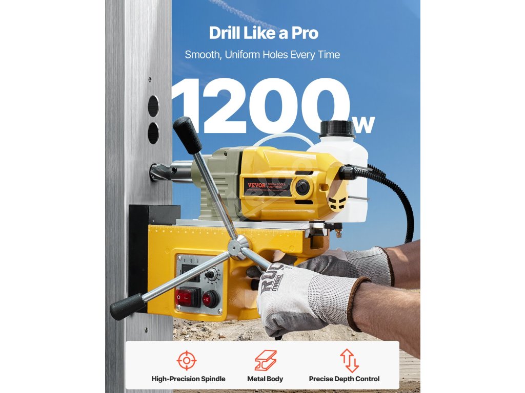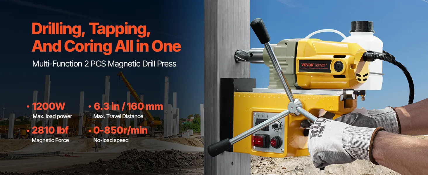 Tento magnetický vŕtací lis bezpečne priľne k oceľovým alebo železným povrchom a poskytuje presné otvory bez otrepov. S 2 vrtákmi zvládne rôzne vŕtacie úlohy. Je vyrobená z prvotriednej zliatiny a je ideálna na domáce montáže, priemyselné použitie a prácu s oceľou.
