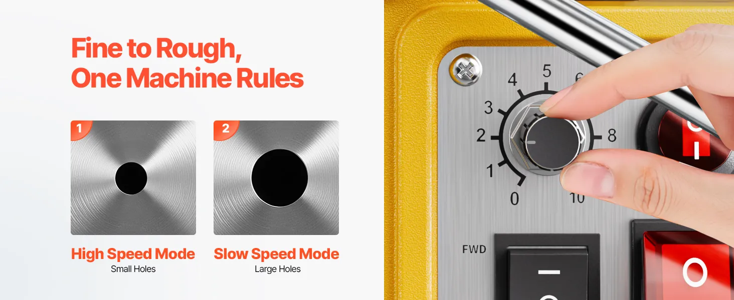 Naša magická vŕtačka sa môže pochváliť 1200W motorom s variabilným rozsahom otáčok 0-850 ot/min, čo výrazne zvyšuje účinnosť vŕtania, najmä pri projektoch, ktoré si vyžadujú rozsiahle vŕtanie. Zaručuje stabilnejšiu prevádzku, väčšiu presnosť a vyšší komfort pri používaní.