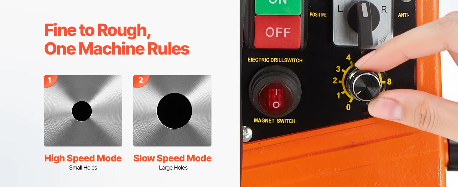 Naša magická vŕtačka sa môže pochváliť 1450W motorom s variabilným rozsahom otáčok 0-830 ot/min, čo výrazne zvyšuje účinnosť vŕtania, najmä pri projektoch, ktoré si vyžadujú rozsiahle vŕtanie. Zaručuje stabilnejšiu prevádzku, väčšiu presnosť a vyšší komfort pri používaní.