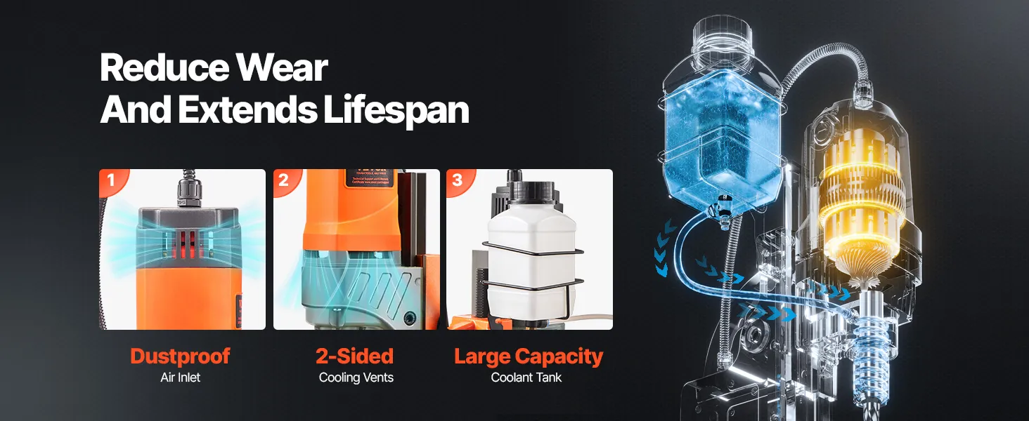 Tento magnetický vŕtací lis bezpečne priľne k oceľovým alebo železným povrchom a poskytuje presné otvory bez otrepov. S 2 vrtákmi zvládne rôzne vŕtacie úlohy. Je vyrobená z prvotriednej zliatiny a je ideálna na domáce montáže, priemyselné použitie a prácu s oceľou.