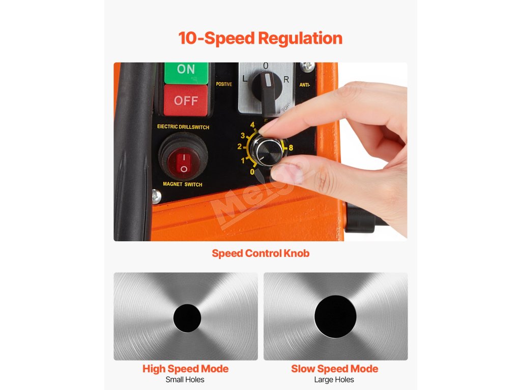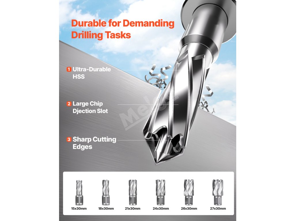 Tento magnetický vŕtací lis bezpečne priľne k oceľovým alebo železným povrchom a poskytuje presné otvory bez otrepov. Vďaka 6 vrtákom zvládne rôzne vŕtacie úlohy. Je vyrobená z prvotriednej zliatiny a je ideálna na domáce montáže, priemyselné použitie a prácu s oceľou.