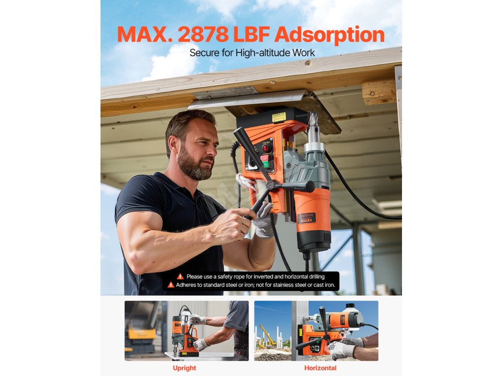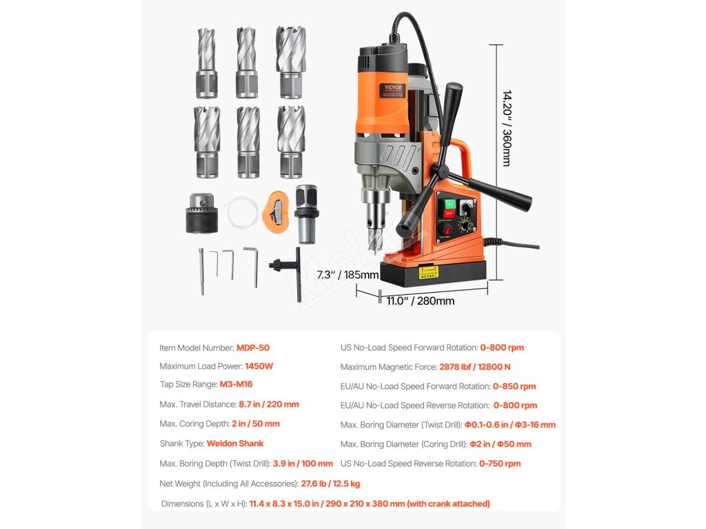 Magnetická vŕtačka 1450W, 2in, 2878 lbf, 6 korunkových vrtákov, na kov