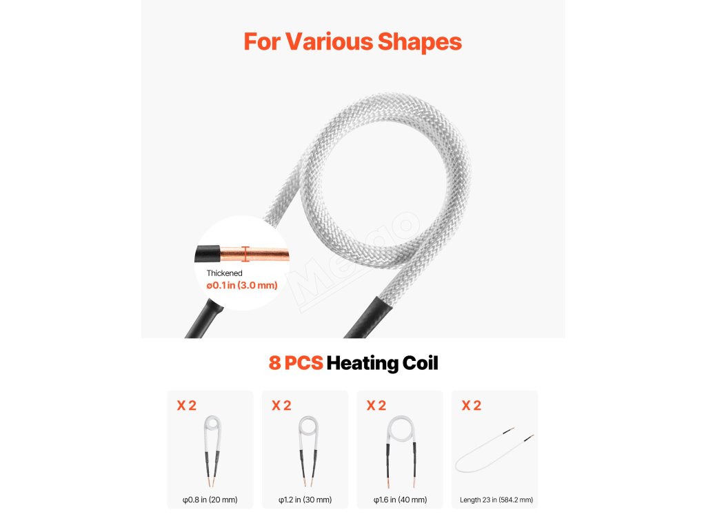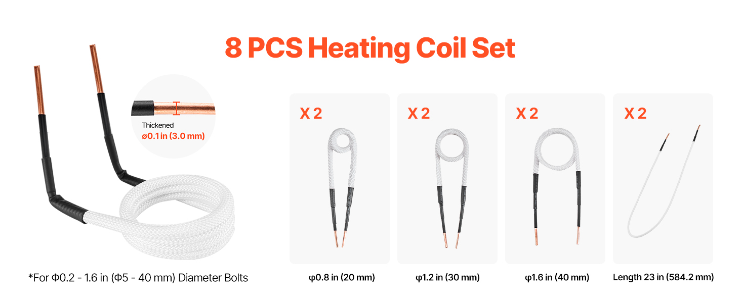 Nástroj na ohrev skrutiek sa dodáva s viacerými špirálami, ktoré si ľahko poradia s nepravidelnými obrobkami. Či už ide o malé skrutky alebo väčšie ložiská, poskytuje presný ohrev. Fialový medený vodivý drôt je účinnejší a izolačná vrstva zo sklenených vlákien ponúka vynikajúcu odolnosť proti poškodeniu.