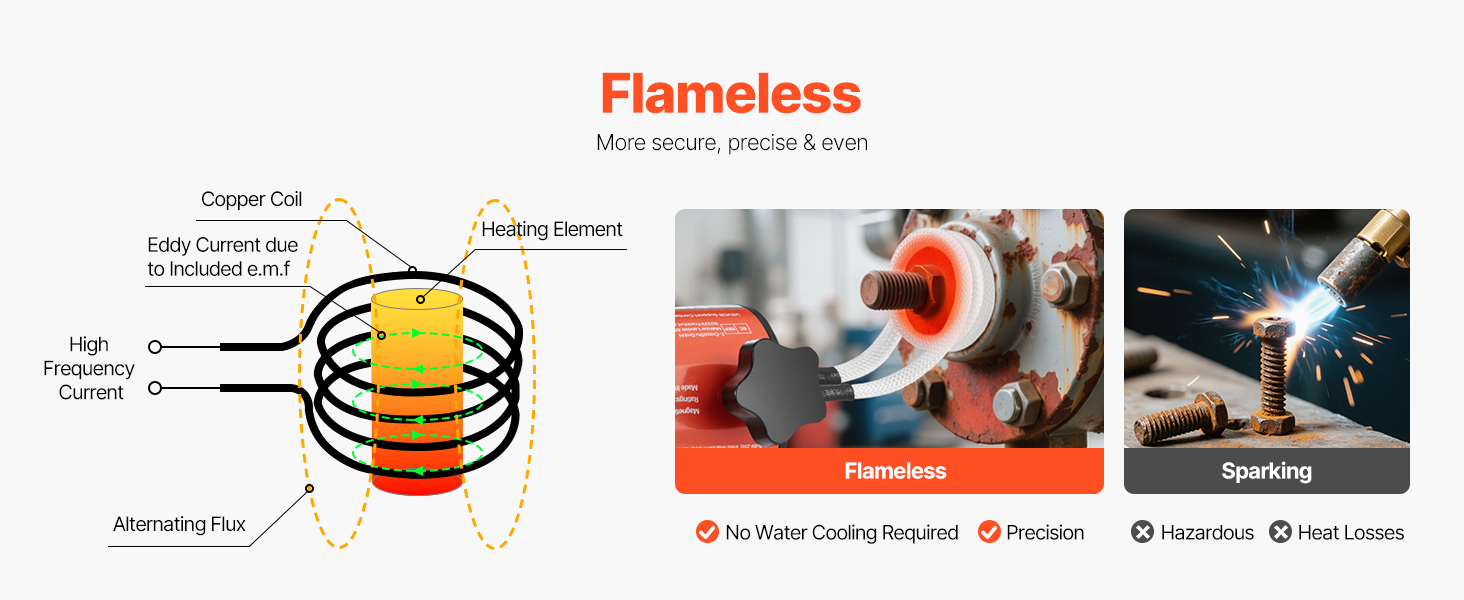 Nie je potrebný žiadny plameň, čím sa predchádza potenciálnym rizikám tradičných metód ohrevu a minimalizuje sa vplyv na okolité diely. Nie je potrebné chladenie vodou a prevádzka nevyžaduje odbornú certifikáciu.