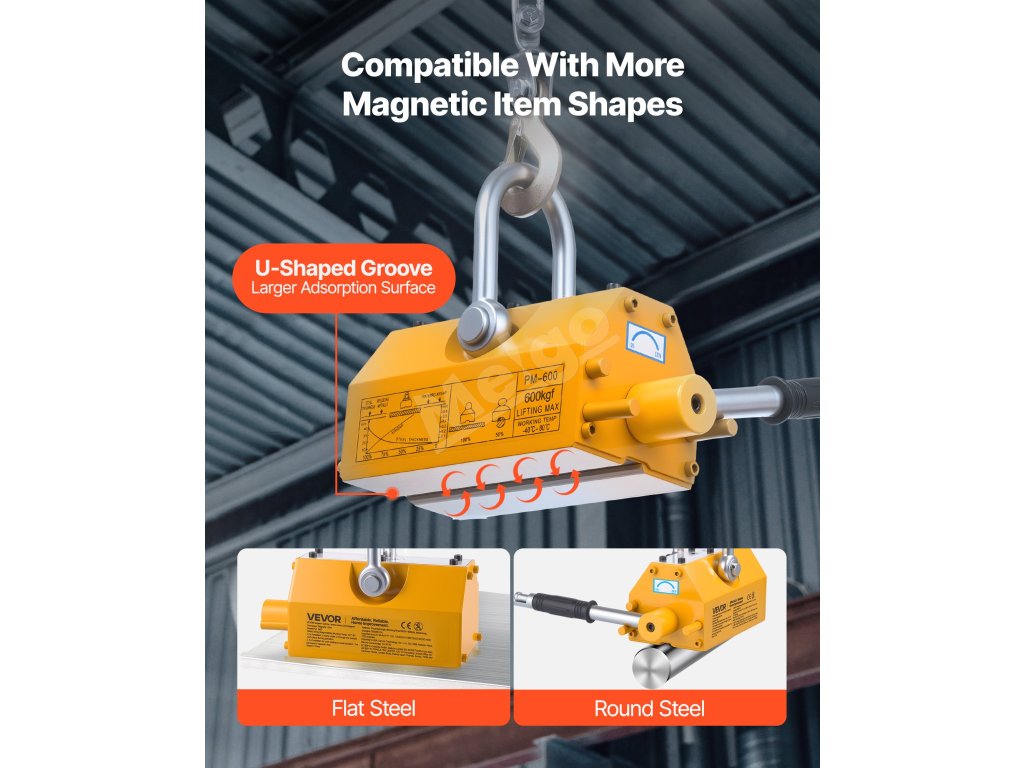 Tento magnetický zdvihák je vyrobený s výkonným neodymovým magnetom N42, ktorý vám umožní zdvíhať oceľové materiály na mieste bez akéhokoľvek napájania. Pripravte sa na zvýšenie efektivity manipulácie s oceľou pomocou nášho zdvíhacieho magnetu!