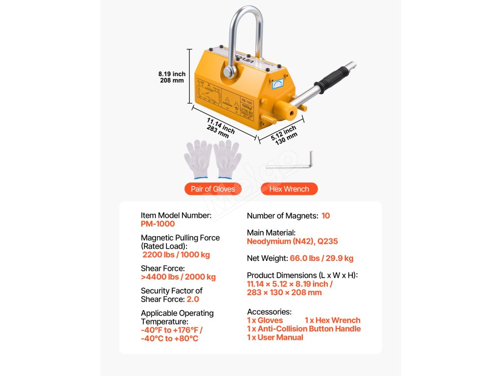 | Magnetická ťažná sila (menovité zaťaženie) | 2200 libier / 1000 kg |