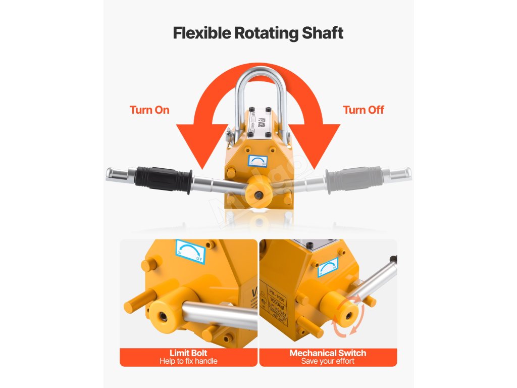 Naše zdvíhacie magnety sa vyznačujú jednoduchým ovládaním jednou rukou. Prepína magnetickú silu bez elektrickej energie - otočením doľava aktivujete silný magnetizmus, otočením doprava ho uvoľníte.