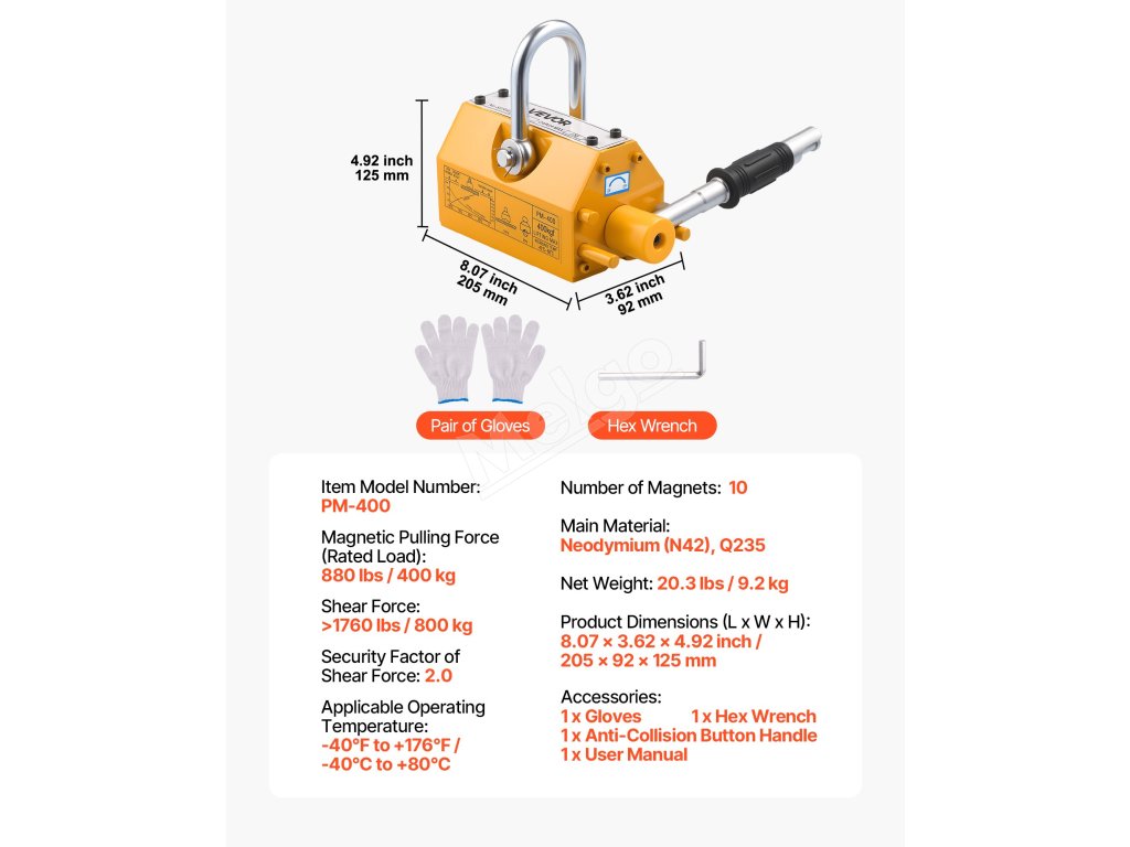 | Magnetická ťažná sila (menovité zaťaženie) | 880 libier / 400 kg |