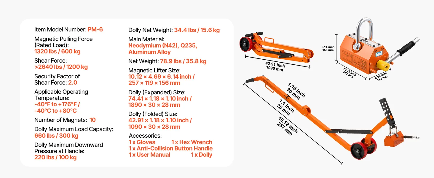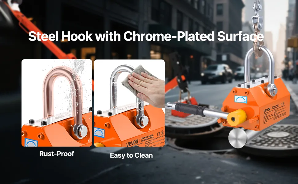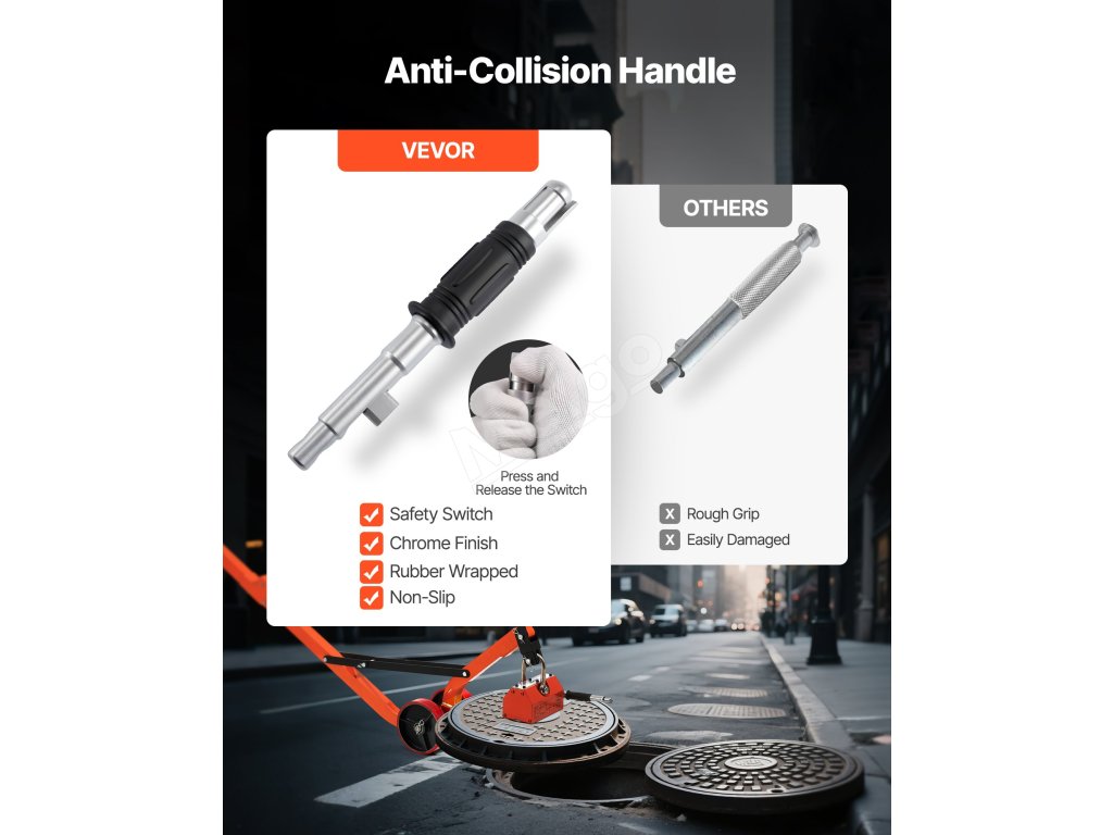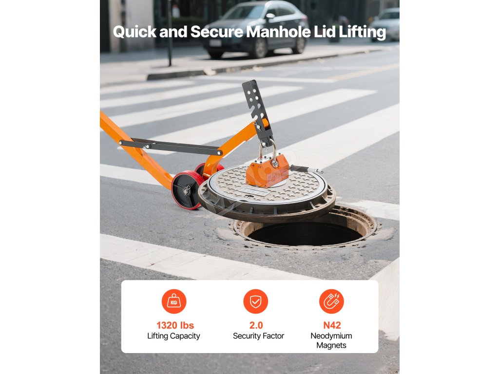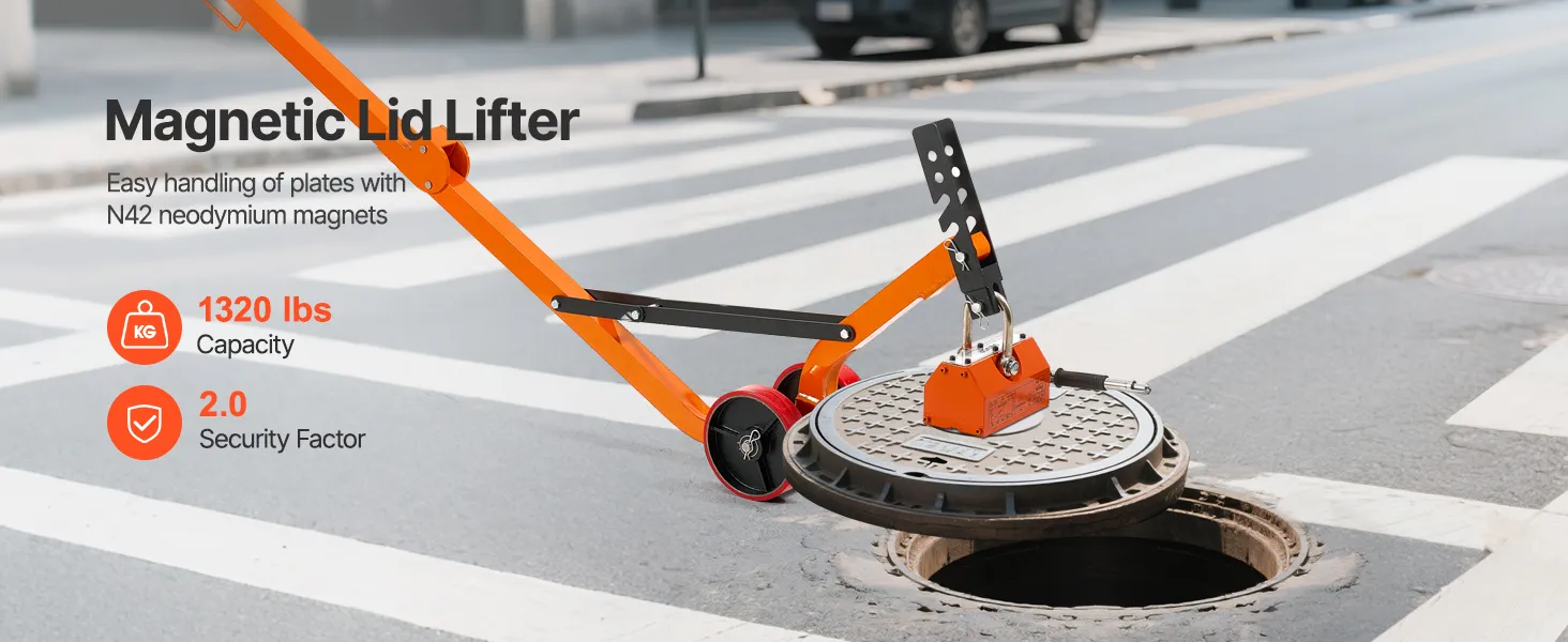 Oceľový vozík s magnetickým zdvihákom je navrhnutý so skladacou konštrukciou na pohodlnú prepravu a kompaktné skladovanie. Magnetická sila 1320 lbs zabezpečuje pevné uchopenie a efektívne zdvíhanie rôznych poklopov šácht s ľahkosťou.
