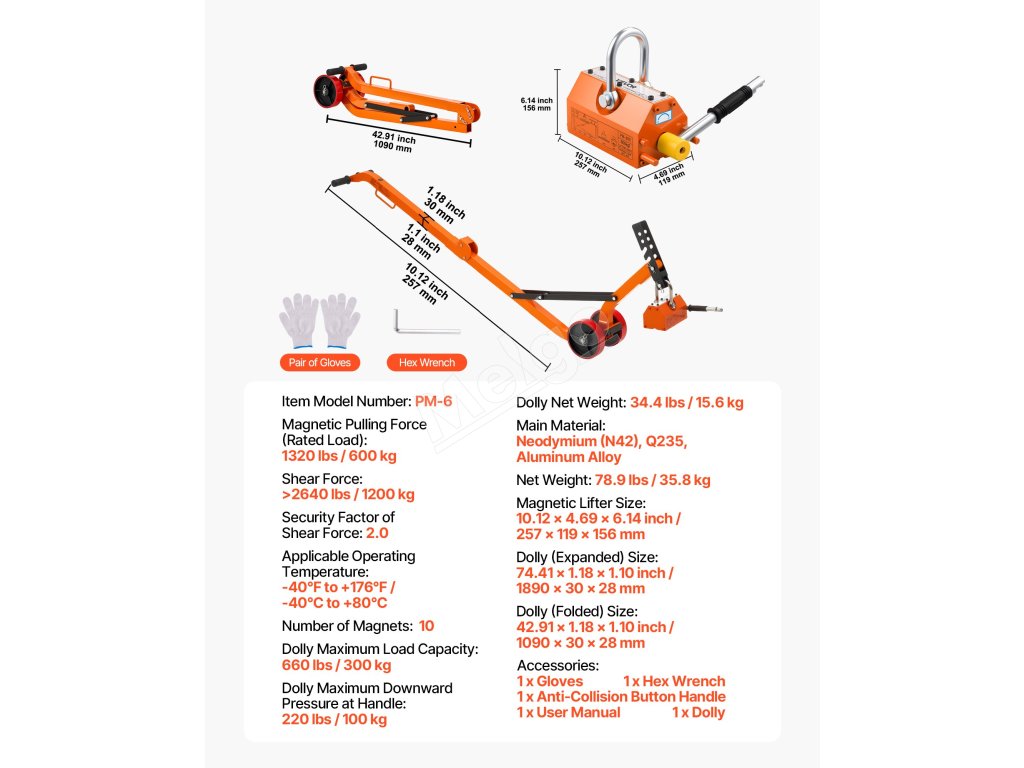 | Veľkosť magnetického zdviháka | 10.12 x 4,69 x 6,14 palca / 257 x 119 x 156 mm |