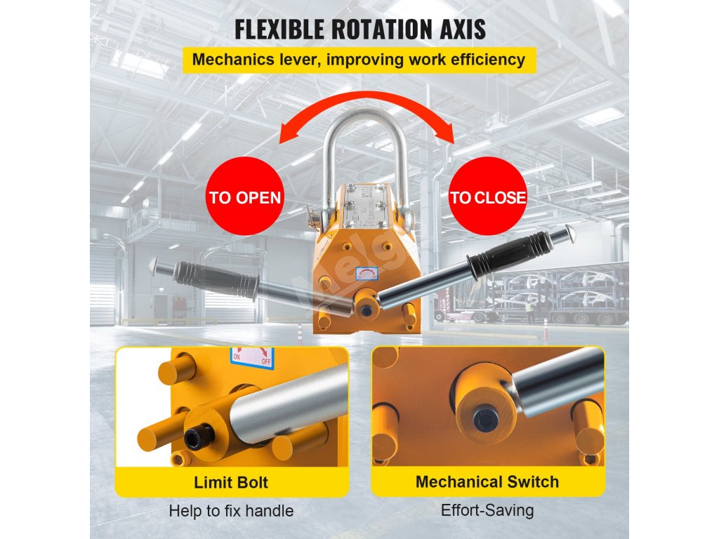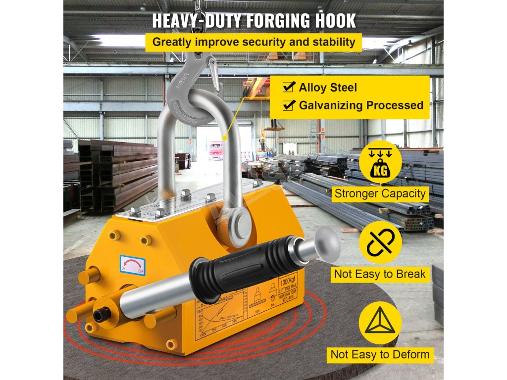 Magnetický zdvihák je vyrobený zo super silných neodymových magnetov, ktoré sa používajú na zdvíhanie oceľových plechov, blokov, tyčí, valcov a iných magnetických materiálov. Nevyžaduje elektrickú energiu, ktorá sa široko používa v priemyselnom svete na vykonávanie oceľových projektov na efektívnejší pohyb. Každá položka musí byť pred odoslaním z továrne kvalifikovane otestovaná.