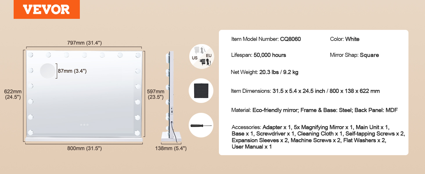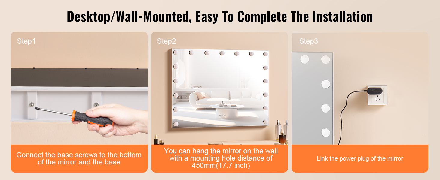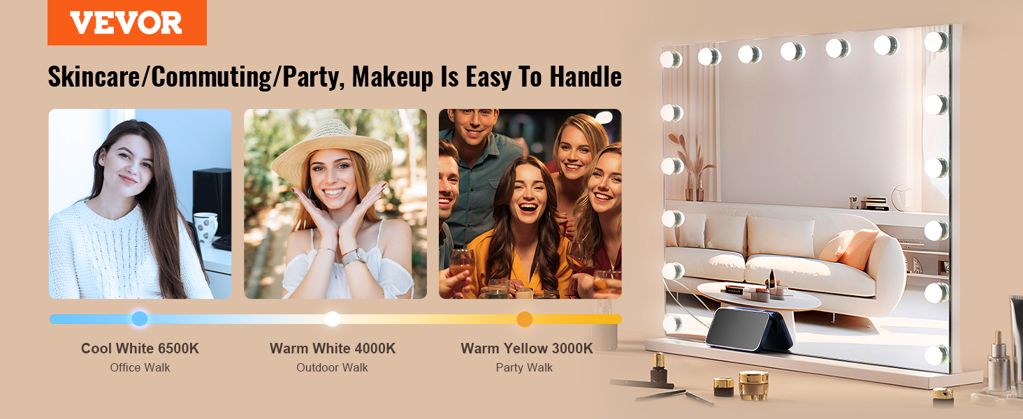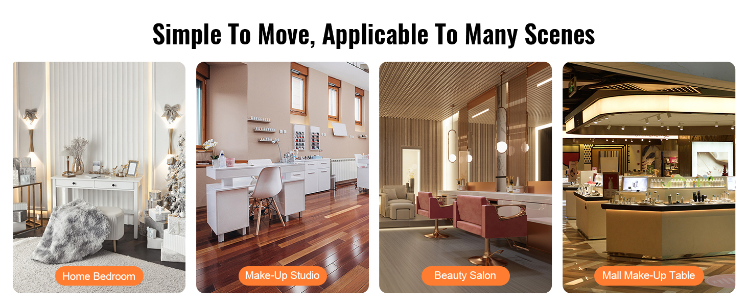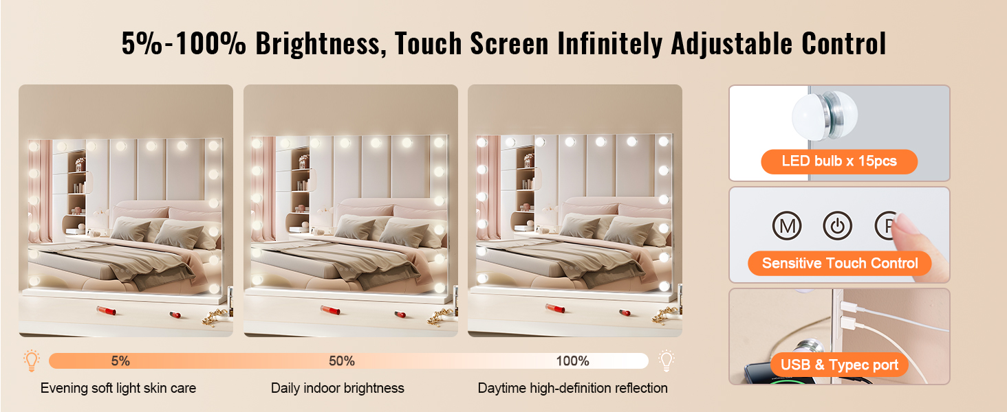 Toto kozmetické zrkadlo s vynikajúcim remeselným spracovaním vám prináša jedinečný zážitok z líčenia. Je vybavené 5-násobnou zväčšovacou šošovkou a dotykovým panelom s nastaviteľným jasom, môžete si vybrať správnu teplotu farieb, čo vám umožní ľahko zachytiť každý detail a vytvoriť nádherný vzhľad líčenia.