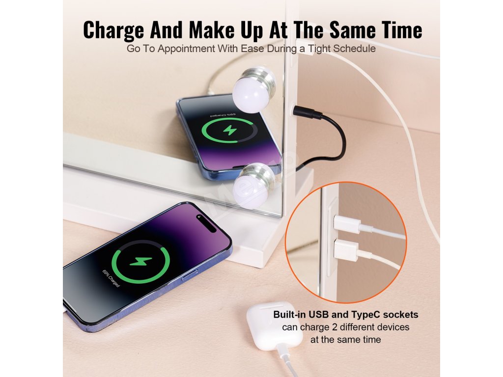 Toaletné zrkadlo s led osvetlením, usb-c, stolné a nástenné 59.9 cm