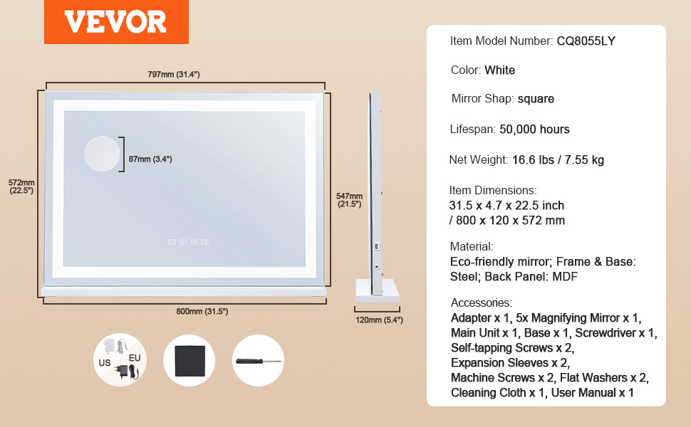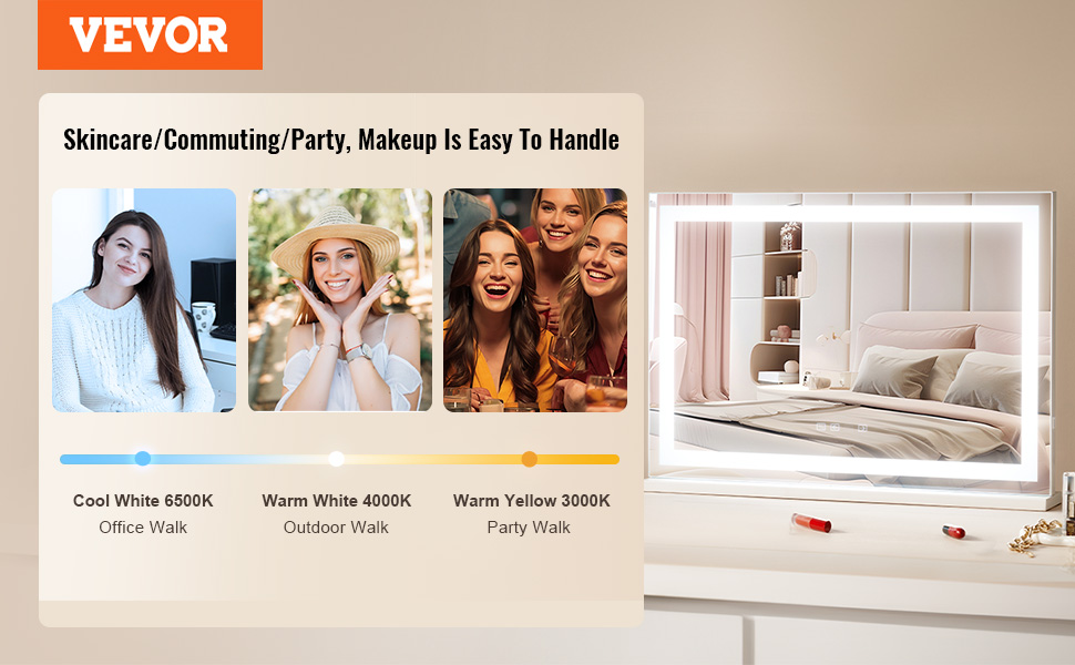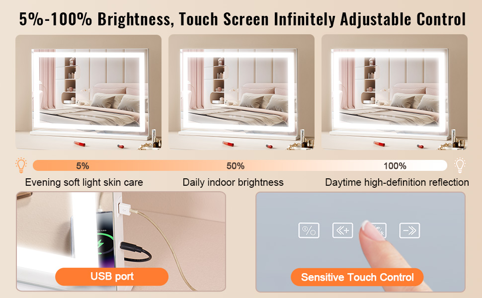 Toto kozmetické zrkadlo s vynikajúcim remeselným spracovaním vám prináša jedinečný zážitok z líčenia. Je vybavené 5-násobnou zväčšovacou šošovkou a dotykovým panelom s nastaviteľným jasom, môžete si vybrať správnu teplotu farieb, čo vám umožní ľahko zachytiť každý detail a vytvoriť nádherný vzhľad líčenia.