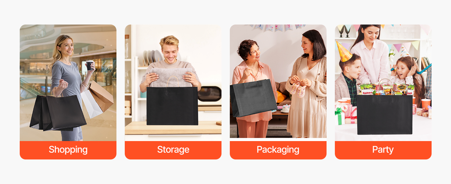 Papierové tašky s rúčkami, veľké kraftové, 50 ks, čierne, 16×6×12 in