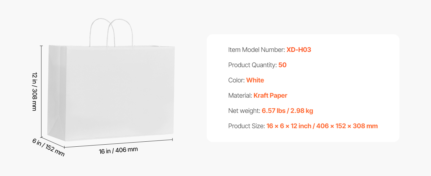 Papierové tašky s uchom z kraft papiera 50 ks 16×6×12 in biele
