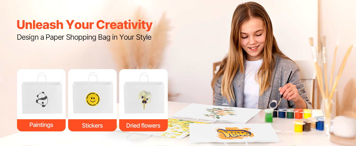 Využite svoju fantáziu a kreativitu a navrhnite si papierovú nákupnú tašku vo svojom štýle pomocou farieb, nálepiek, sušených kvetov a iných dekorácií.