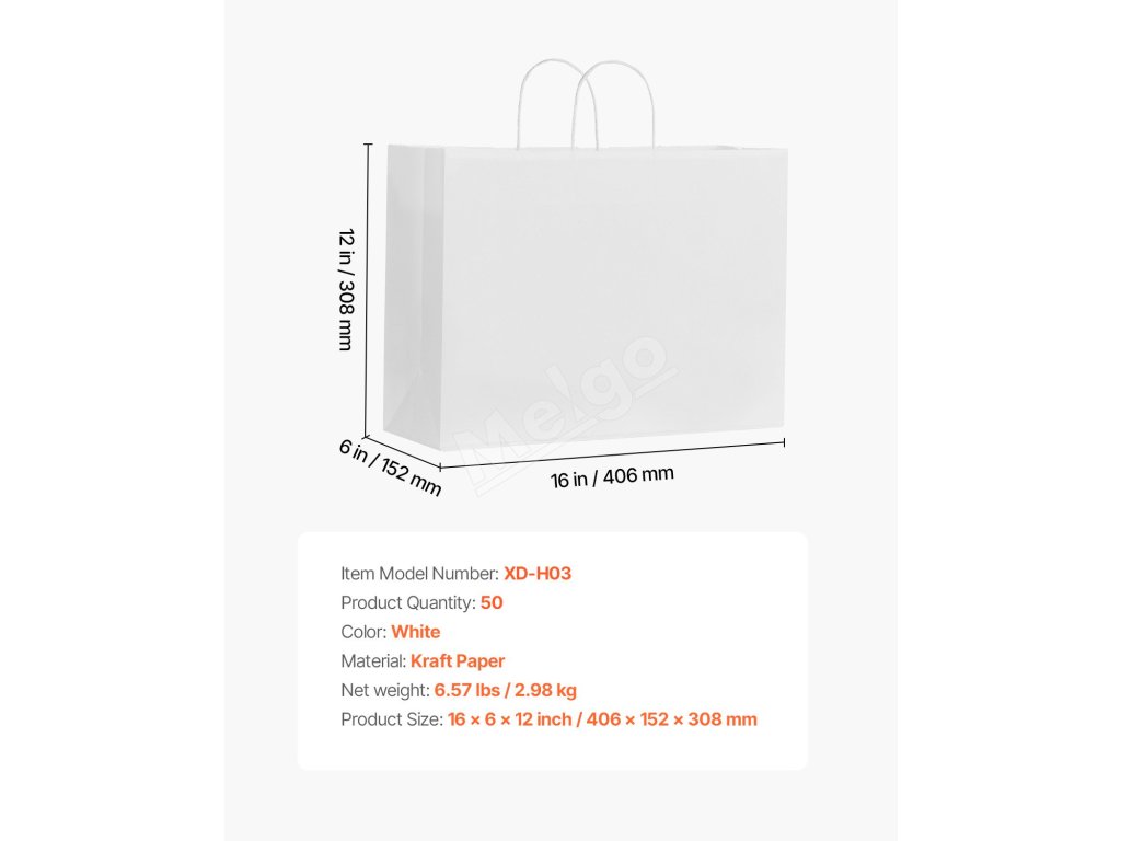 Papierové tašky s uchom z kraft papiera 50 ks 16×6×12 in biele