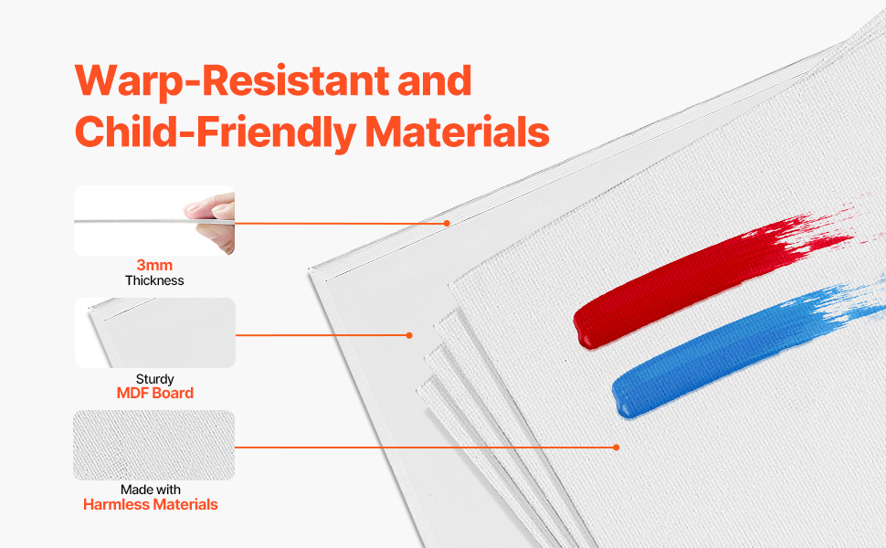 Naše plátno na maľovanie má 3 mm hrubú MDF dosku, ktorá ponúka vynikajúcu stabilitu, aby sa zabránilo ohýbaniu alebo deformácii vášho umeleckého diela. Je vyrobené z materiálov vhodných pre deti, čím zaručuje bezpečný a pohodlný zážitok pre vaše deti.