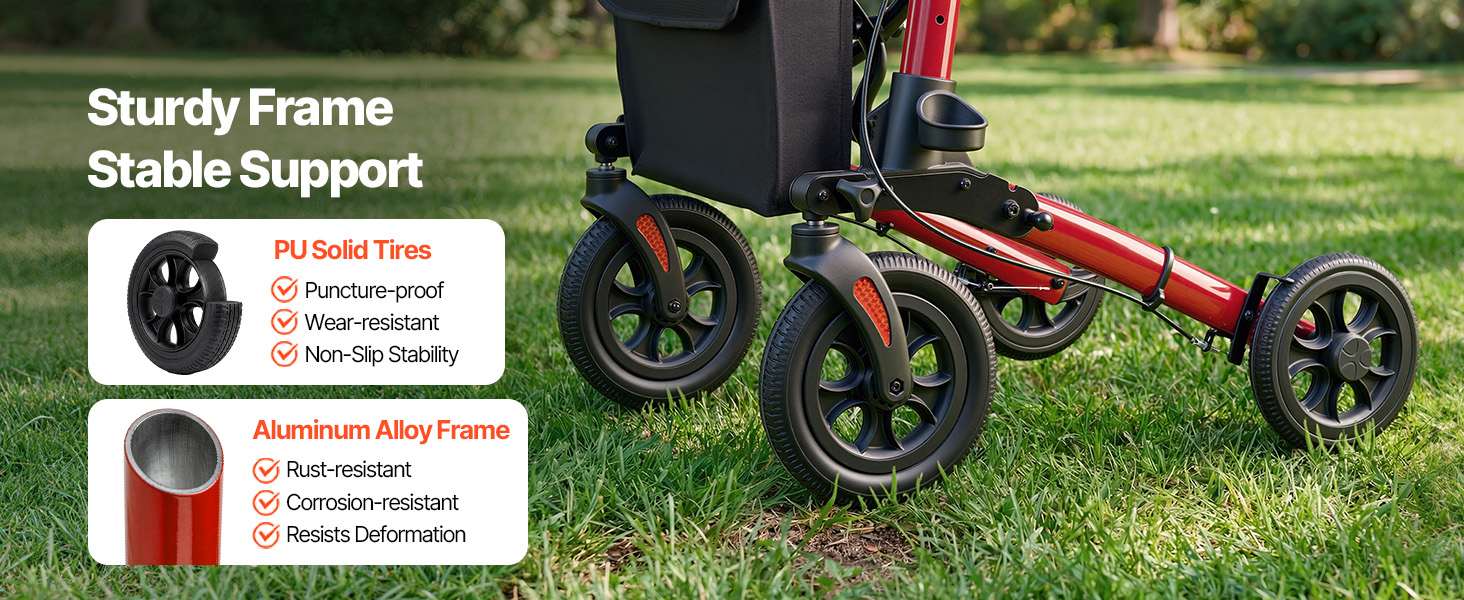 Tento rollátor s sedadlom, navrhnutý s pevným rámom z hliníkovej zliatiny a veľkými pevnými PU kolesami, poskytuje spoľahlivú oporu, plynulú mobilitu a zvýšenú stabilitu pre každodenné použitie.