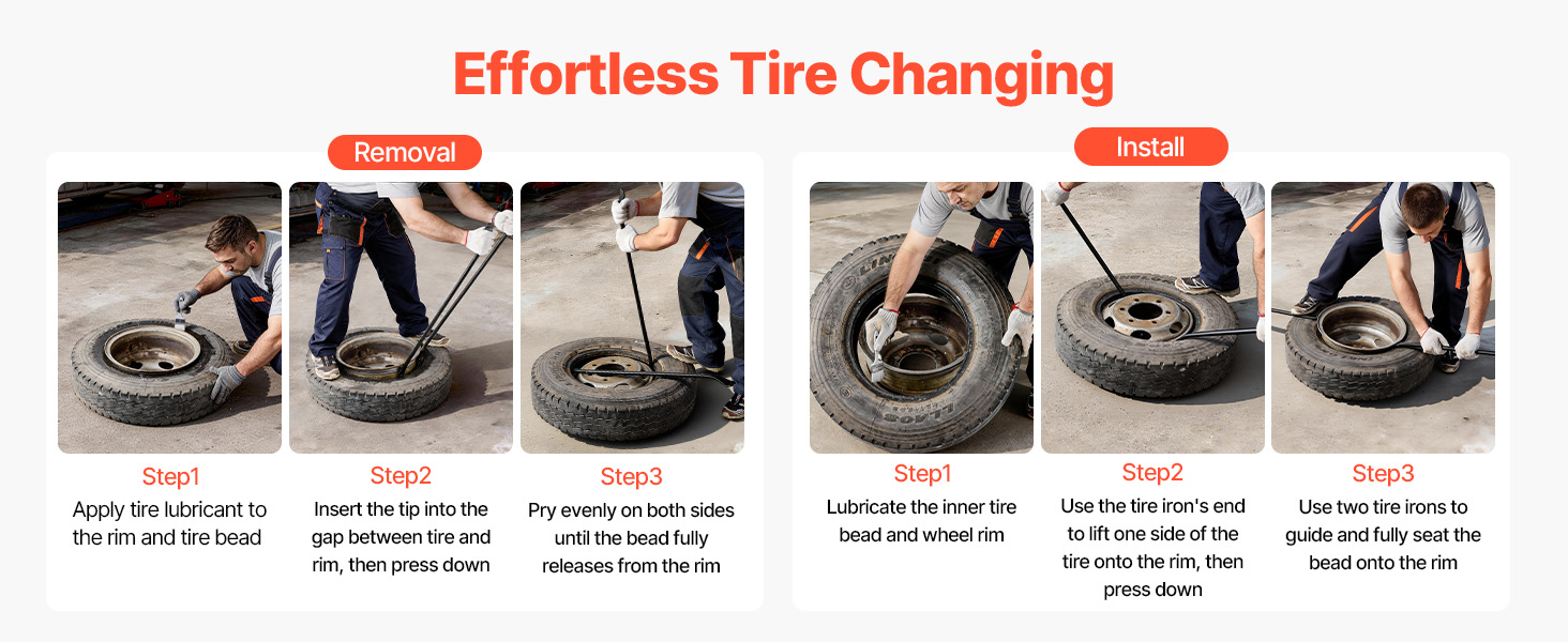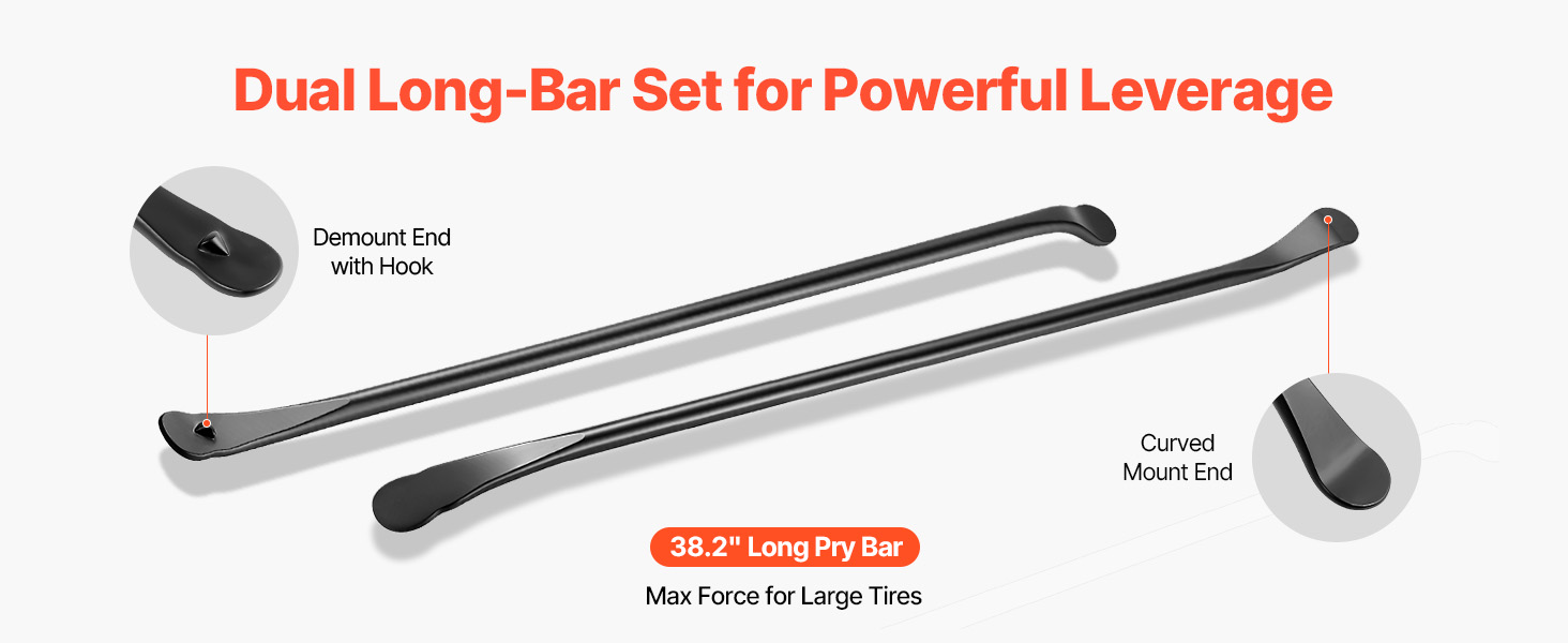 Táto sada dvoch tyčí na pneumatiky je navrhnutá pre obsluhu jednou osobou a umožňuje jedinému používateľovi zvládnuť náročnú výmenu pneumatík na nákladných automobiloch, dodávkach a terénnych vozidlách. Použitie dvoch tyčí na pneumatiky pomáha efektívne oddelenie pneumatiky od ráfika, čím sa proces stáva jednoduchším a efektívnejším.