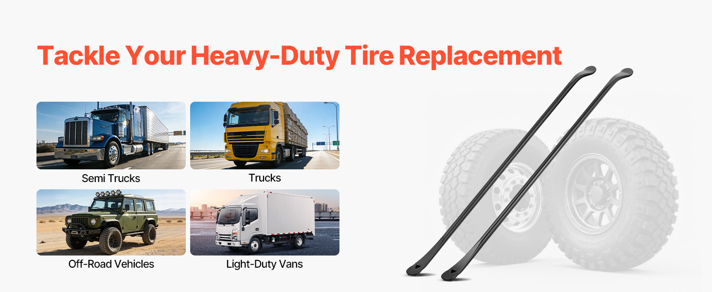 Náš nástroj na montáž pneumatík je kompatibilný s väčšinou štandardných bezdušových pneumatík na návesoch, SUV, RV, nákladných vozidlách, terénnych vozidlách a poľnohospodárskych strojoch. Je ideálny pre majiteľov nákladných vozidiel, profesionálnych mechanikov a údržbu ťažkých vozidiel.