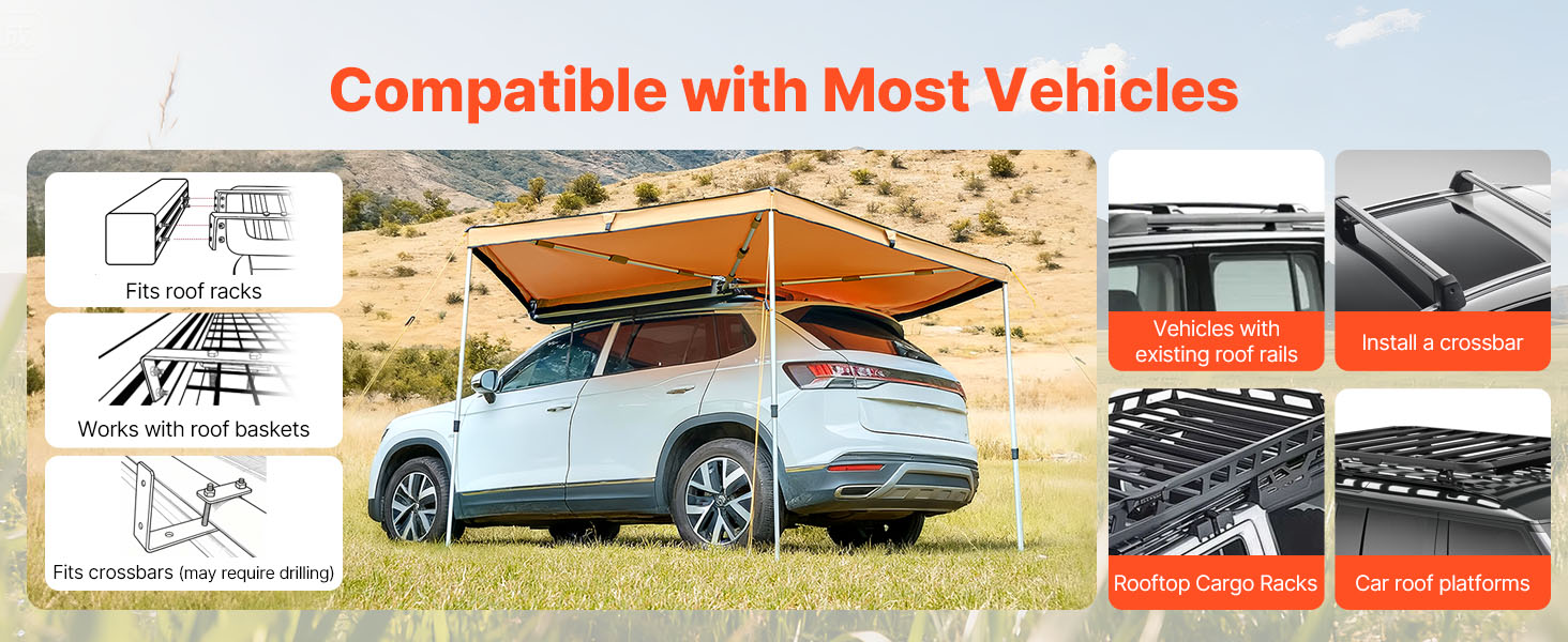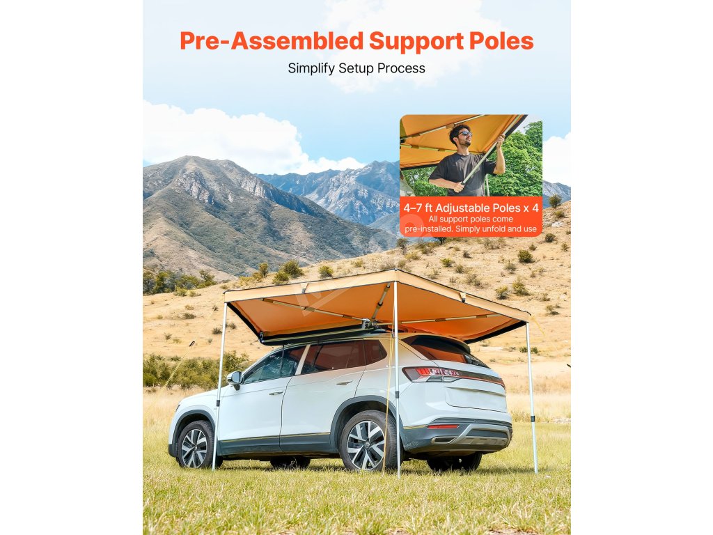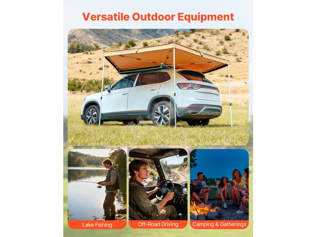 Táto bočná markíza na vozidlo so širokouhlým dizajnom 270° a výškou 6,89 m ponúka dostatočné pokrytie a poskytuje ochranu proti UV žiareniu, vetru a vode. Ľahko ju pripevníte na bočnú stranu svojho vozidla a rýchlo si ju pripravíte na kempovanie alebo piknik za každého počasia.