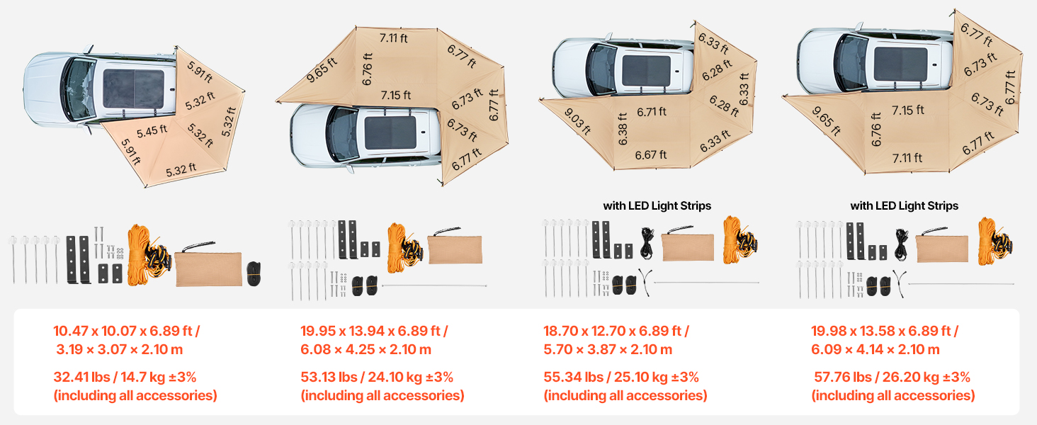 Markíza 270° s led, 12.4 ㎡, vodoodolná, uv50+, pre vodiča, pre suv