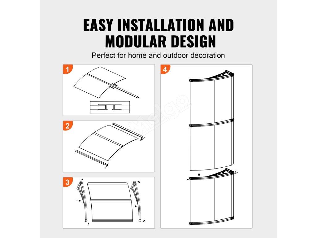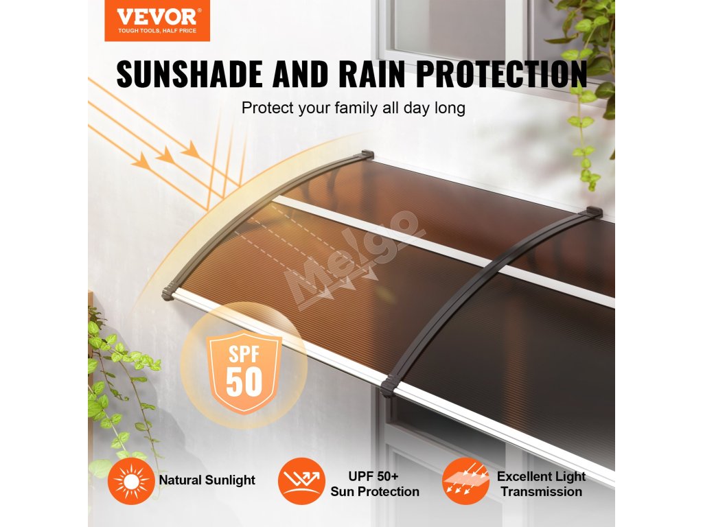 Tento výrobok je starostlivo skonštruovaný s použitím hliníkových tyčí, ktoré zabezpečujú pevné a bezproblémové spoje. Každý spoj je pevne utesnený, aby sa účinne zabránilo prenikaniu vody aj počas silných dažďov. Poskytuje spoľahlivú ochranu vašich dverí a okien a udržiava ich v suchu a bezpečí.