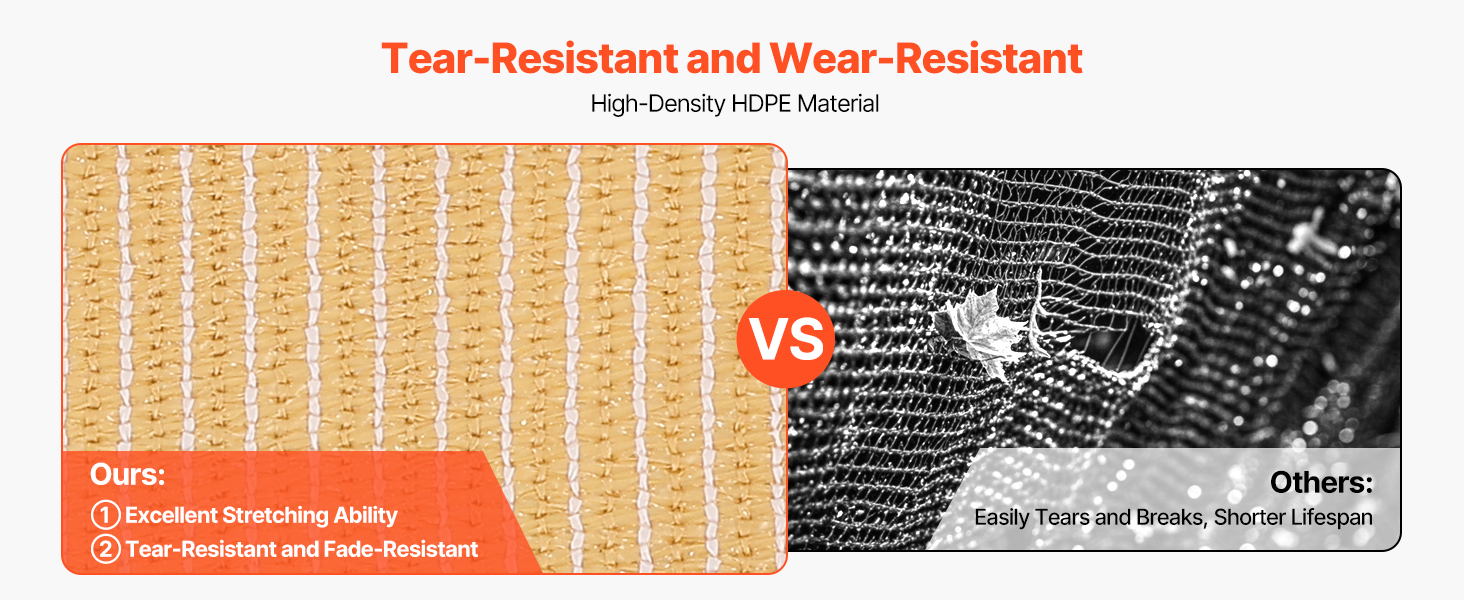 Táto 90 % tieniaca tkanina vyrobená z materiálu HDPE s vysokou hustotou ponúka rozťažnosť a je odolná proti roztrhnutiu, čo zaručuje dlhú životnosť. Účinne tiež zabraňuje vyblednutiu spôsobenému vystavením slnečnému žiareniu, čím si zachováva svoj estetický vzhľad počas dlhodobého používania.
