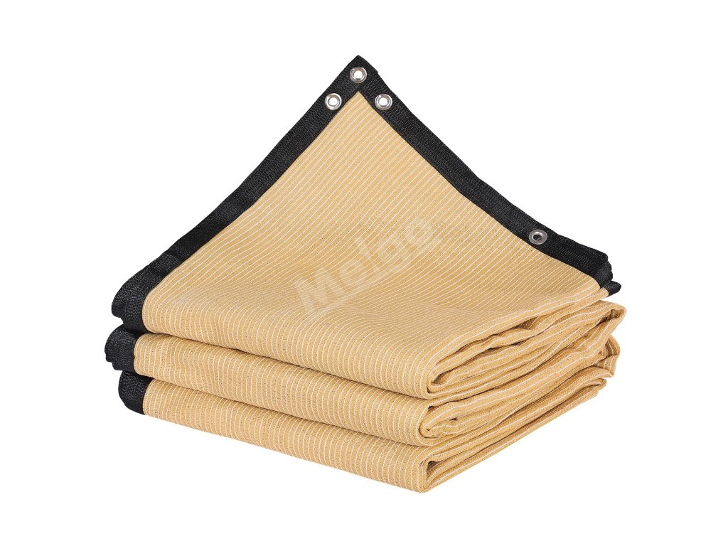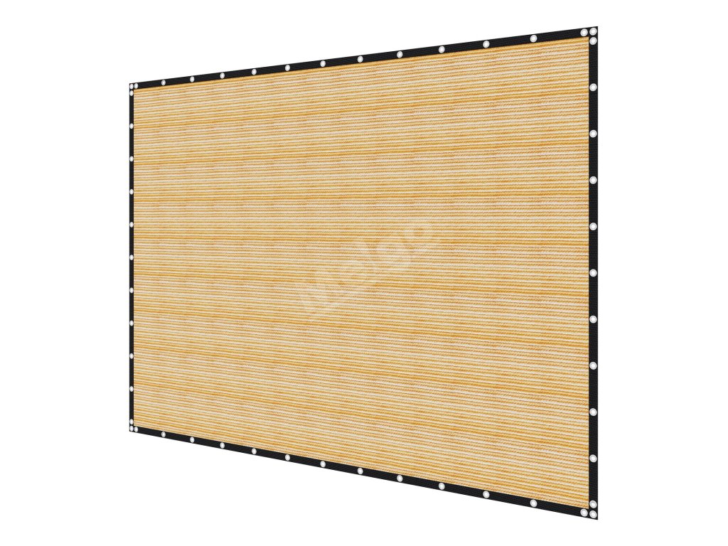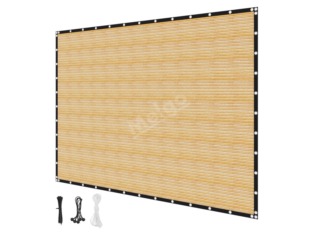 Tkanina HDPE s vysokou hustotou 160 GSM je odolná proti roztrhnutiu, vodotesná a priedušná. Blokuje slnečné žiarenie pre trvalý tieň a pohodlie. Vďaka priechodkám z nehrdzavejúcej ocele, 30 zipsom, 5 elastickým guľôčkam a 4 nylonovým lanám umožňuje flexibilnú inštaláciu na ochranu pred slnkom a súkromia.