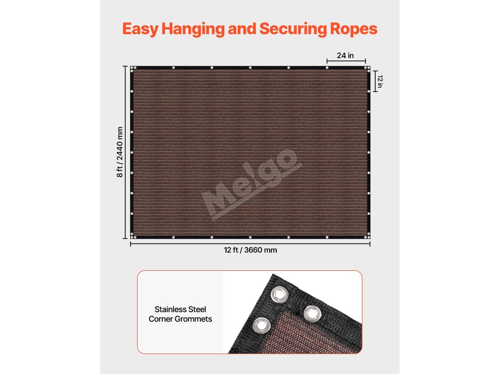 Slnečná clona 90% tieniaca 8 × 12 ft, 140 GSM HDPE, nerezové očká