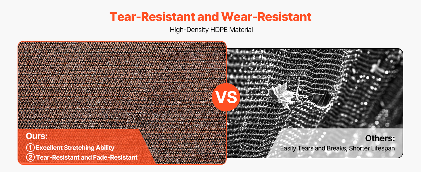 Táto 90 % tieniaca tkanina vyrobená z materiálu HDPE s vysokou hustotou ponúka rozťažnosť a je odolná proti roztrhnutiu, čo zaručuje dlhú životnosť. Účinne tiež zabraňuje vyblednutiu spôsobenému vystavením slnečnému žiareniu, čím si zachováva svoj estetický vzhľad počas dlhodobého používania.