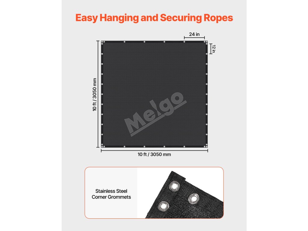 Tieniaca plachta 10×10 ft, 140 gsm hdpe, nerezové oká, čierna
