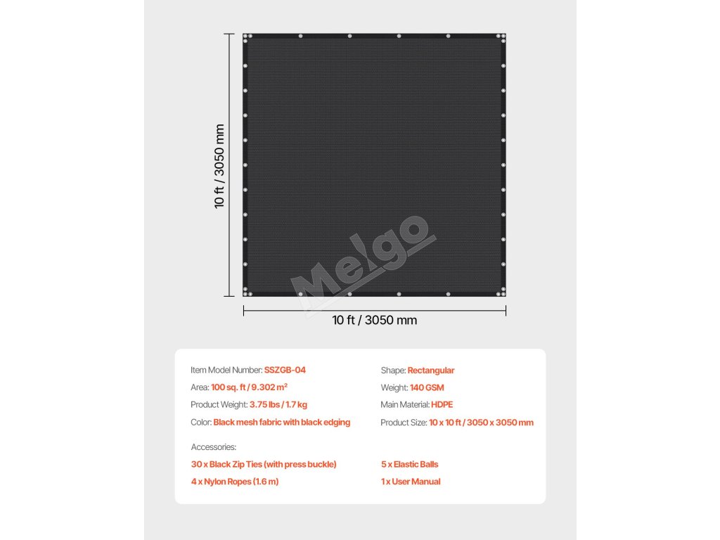 | Veľkosť výrobku | 10 x 10 stôp / 3050 x 3050 mm |