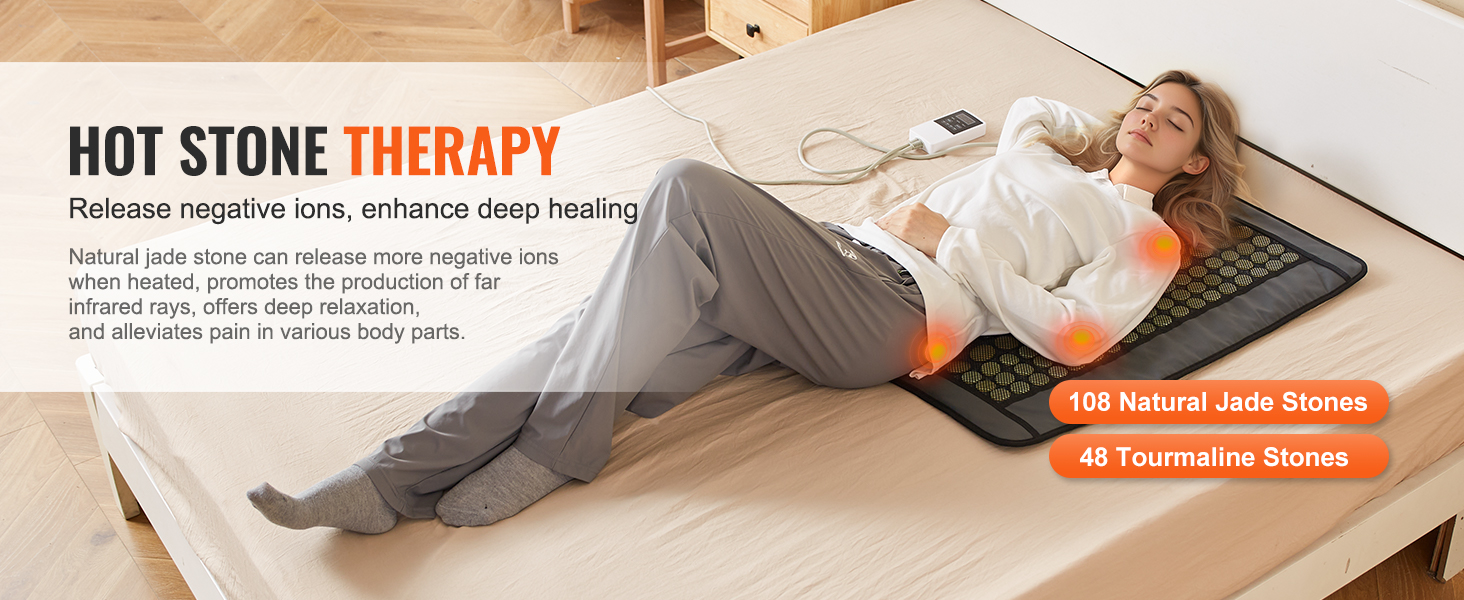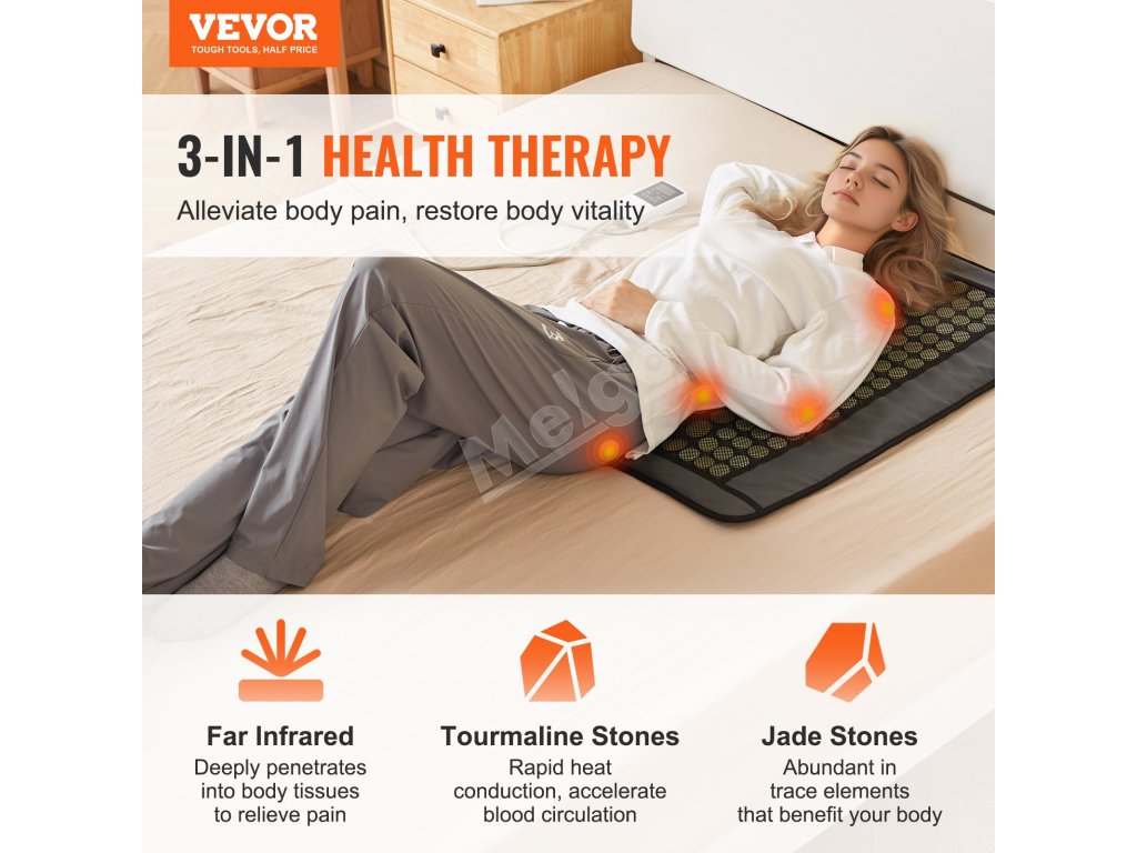 Vyhrievacia podložka VEVOR s ďalekým infračerveným žiarením je ideálnou voľbou pre tých, ktorí hľadajú upokojujúce teplo a zdravie. Kombináciou ďalekých infračervených lúčov, 108 prírodných nefritov a 42 turmalínových kameňov hĺbkovo upokojuje svalové napätie, podporuje krvný obeh a zlepšuje kvalitu spánku. Vyberte si ho a osvojte si zdravší život!