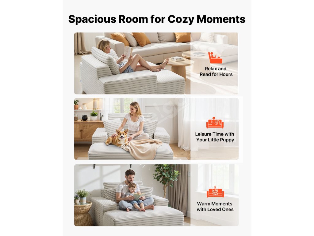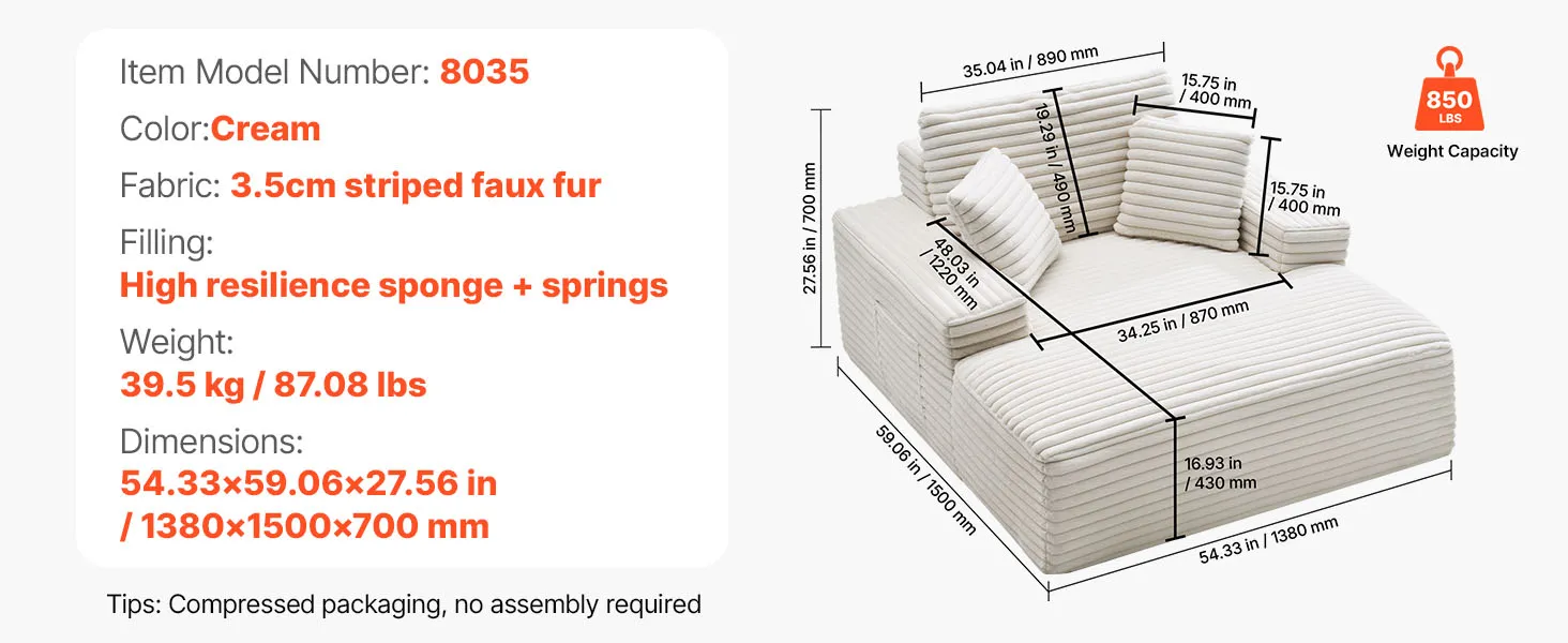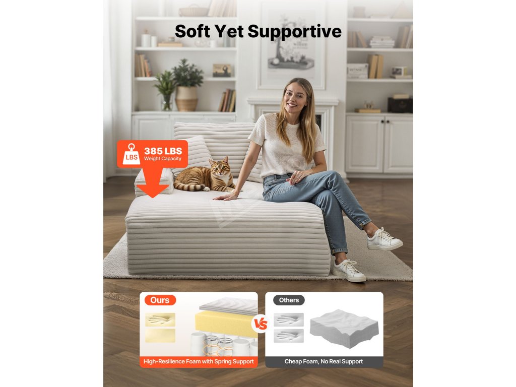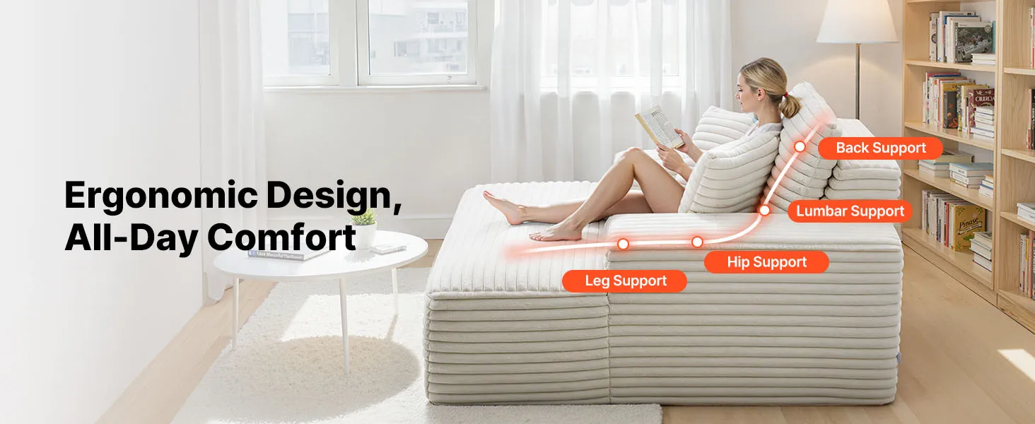 Sedací vankúš s vysokou hustotou tohto nadrozmerného ležadla poskytuje pevnú oporu, zatiaľ čo ergonomický dizajn zabezpečuje pohodlie pri dlhom sedení, čím zabraňuje únave a ovisnutiu.