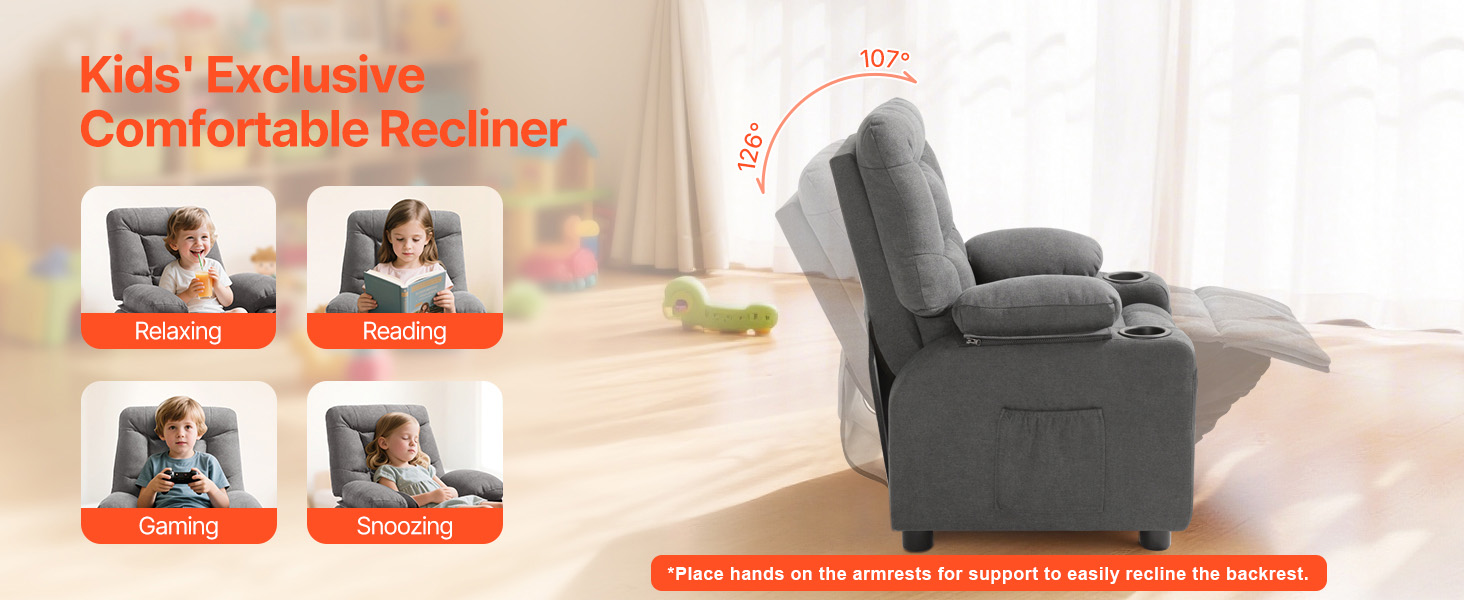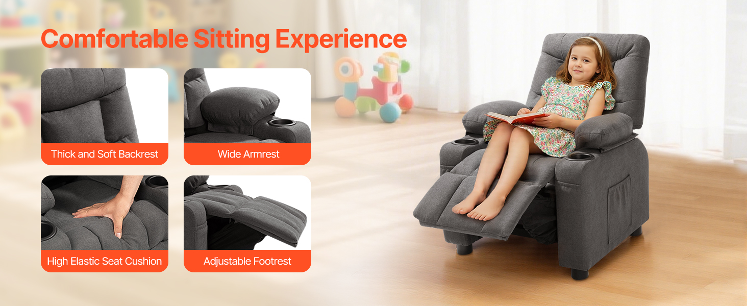 Toto detské kreslo má hrubé, mäkké operadlo, široké a pohodlné podrúčky, vysoko elastický sedák a výsuvnú opierku na nohy, čo deťom poskytuje skvelý zážitok zo sedenia.