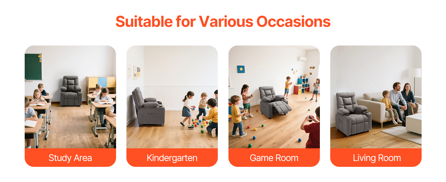 Toto kreslo má nastaviteľné operadlo a pevný drevený rám, ktorý zaisťuje stabilitu. Mäkká polyesterová tkanina a výplň z peny poskytujú pohodlie a priedušnosť. Je ideálne do študovní, obývacích izieb, materských škôl a detských izieb.