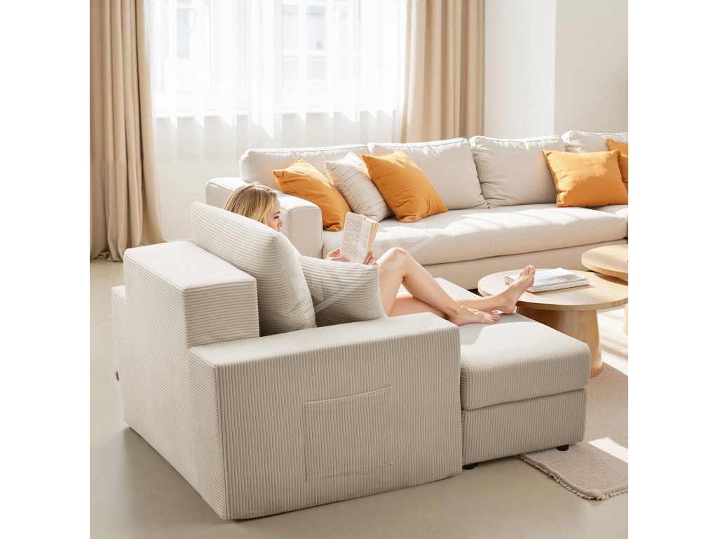 Leňoška 1115 mm modulárna bez rámu, kordurová, s vankúšmi, béžová
