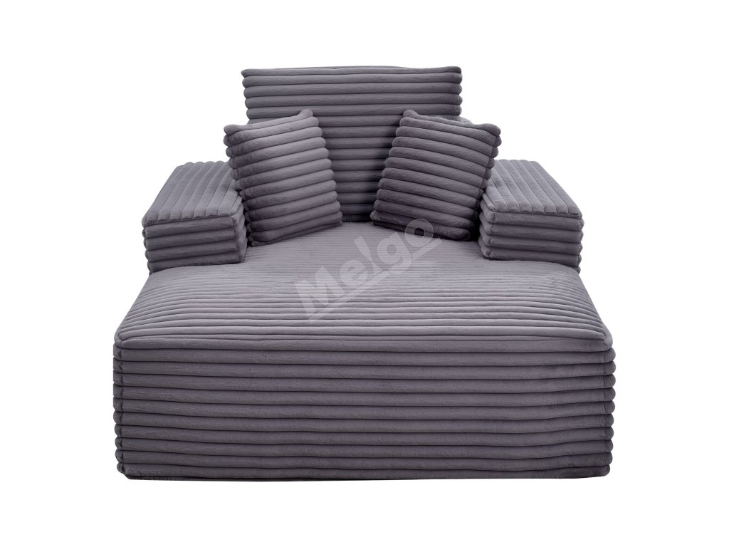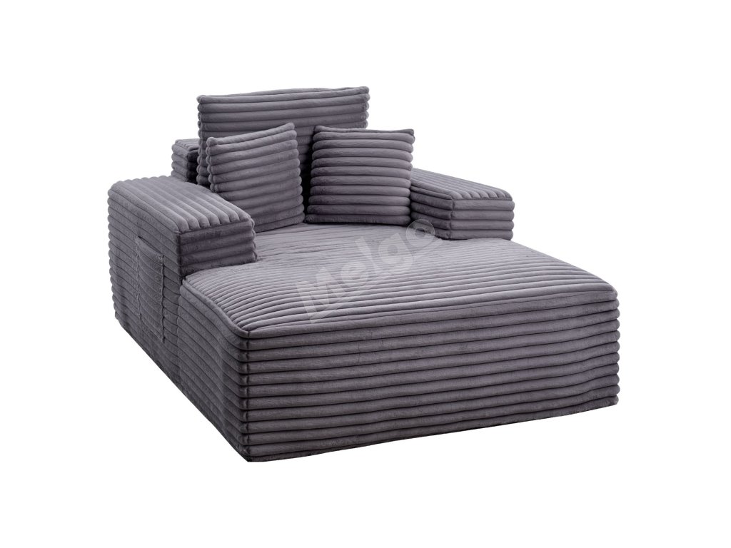 Leňoška čalúnená 1380 mm s opierkami a vankúšmi, hlboké sedenie, sivá
