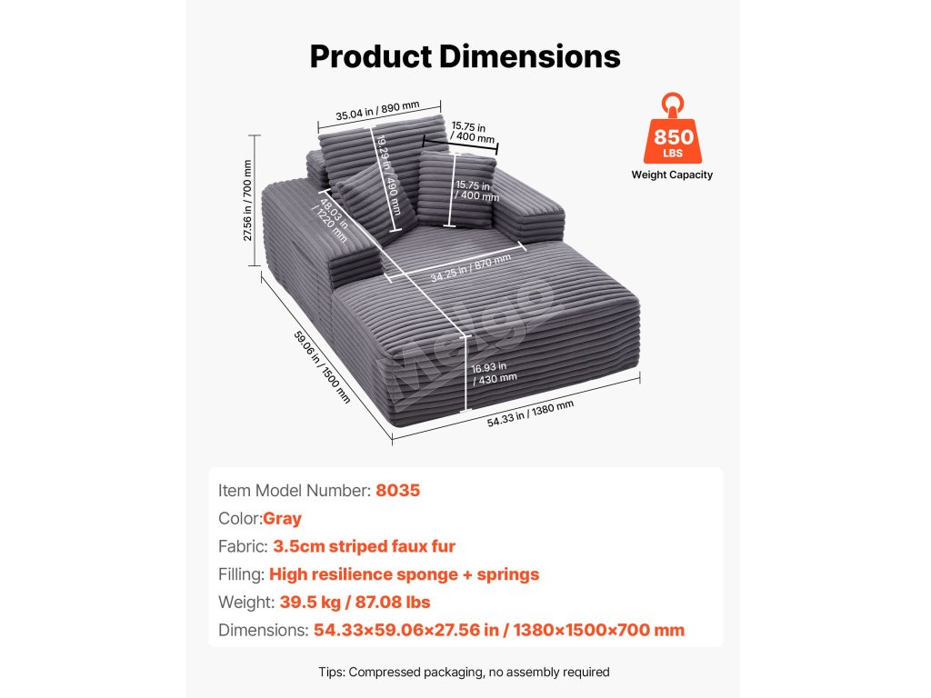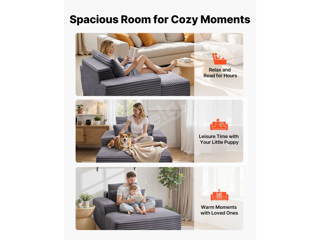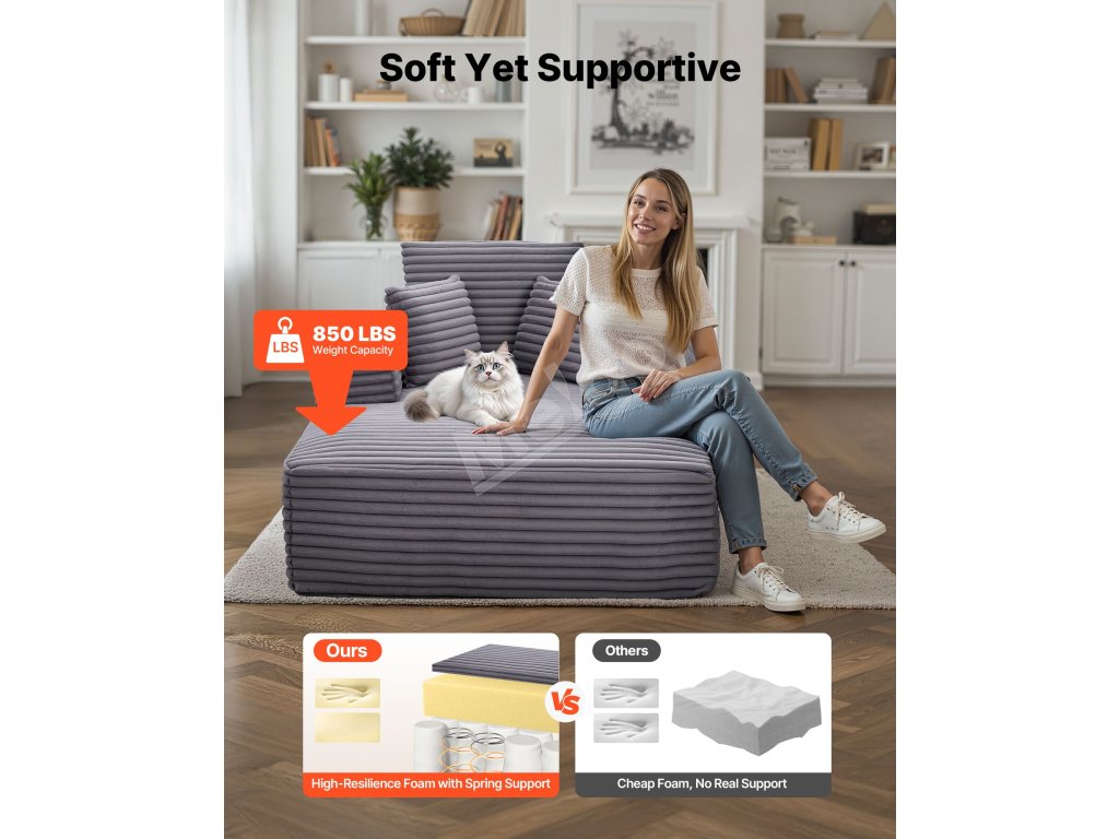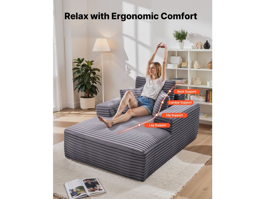 Sedací vankúš s vysokou hustotou tohto nadrozmerného ležadla poskytuje pevnú oporu, zatiaľ čo ergonomický dizajn zabezpečuje pohodlie pri dlhom sedení, čím zabraňuje únave a ovisnutiu.